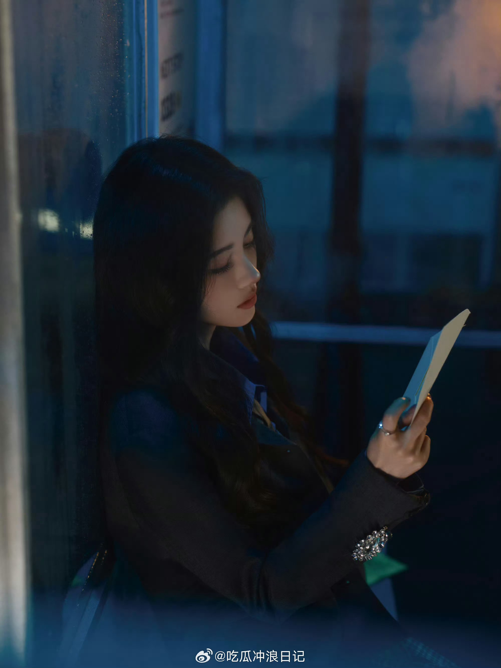 鞠婧祎火焰玫瑰 火焰玫瑰遇上蓝调雨夜,这搭配自带氛围感!造型图就这么有故事感,今