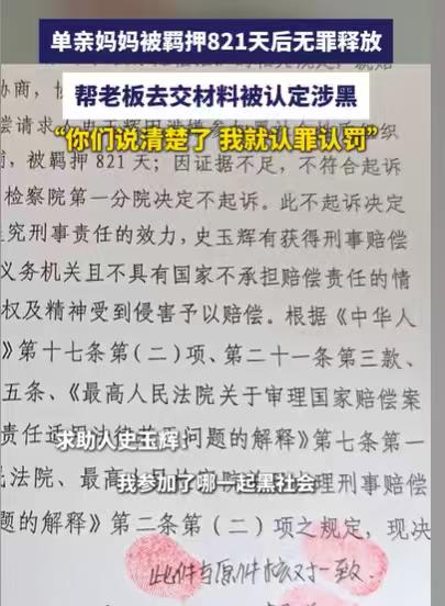海南,女子帮老板买单,被认定为涉黑了,对方说,如果认了,就是一年半,不认就是两年,她坚持不认,结果被羁押了821天,后来无罪释放,她申请了国家赔偿,结果仅仅13天过去,她又被立新案了,女子表示,这太巧了,她质疑这是针对赔偿而立的新案,就是想规避责任,对她打击报复。 2021年8月23日,史玉辉莫名其妙地被黑社会了,当时她还在办公室上班,突然就来了几个人,让她协助调查,史玉辉还没反应过来,一副手铐就给她戴上了。 她不过是一个普普通通的经理,干着一份普通的工作,领着一份普通的工资,怎么莫名其妙就说她黑社会了,她非常困惑又有些抗拒地问:“干嘛给我戴上手铐?我又没有犯什么罪!” 他们只是轻描淡写地说了一句,说这是工作需要。 就这样,史玉辉被带走了,她想不明白她只是一个物业经理,她的工作怎么会与黑社会有关。 那几个人带着史玉辉回到她的家,没有任何手续,也没有任何执法记录,就搜她的家了,因为她确实没有做过任何涉黑的事情,她家自然也找不到相关的证据。 他们只好将她带回审讯室,他们跟史玉辉说,说满意了,他们就让史玉辉回家,说不满意,那么就要史玉辉承担相应的后果。 史玉辉不知道要说什么,因为她真的不知道自己到底做了什么事情,涉黑了,她当然说不出之所以然来。 这时他们又跟她说了,如果认的话,那么就是一年半,如果不认的话,那就是两年。 她又没有做过任何事情,怎么认,她当时只有一个想法,既然要她认,那么就得说清楚,她到底参加了哪一起黑社会活动,或者她做了什么事情,导致她参加了黑社会活动。 她只有一个要求,那就是他们把这件事情说清楚了。有理有据了,那么她可以认罪认罚。 他们并没有说出具体的原因,只是跟史玉辉说,史玉辉给老板递送材料给部门,他们发现史玉辉和老板聊天记录是非常愉悦的,和老板吃饭,还给老板买单,这就是涉黑了。 如此而已,就被认为参加了黑社会活动,史玉辉当然不认,她是一名员工,和老板吃饭,协助老板买单,这怎么算是涉黑活动? 并且她提交的资料是属于正规的资料,以此为由,认为她涉黑了,她不服,她坚决不认,结果就被羁押了821天。 821天,史玉辉坚持一个信念,她没有做过的事情,她不认罪,终于她的坚持迎来了光明。 2023年的10月23日,她被取保候审了,后来检察院认为证据不足,不符合起诉条件,下达了不起诉决定书,这件事终于告了一段落,事情也真相大白了,她无罪,她没有参加黑社会活动。 821天的坚持,换来了自己的清白,史玉辉觉得这是值得的,唯一不值得的就是,她被冤枉了,让她白白被羁押了821天。 经历这样的821天,如今无罪释放,史玉辉当然要为自己讨一个公道,她要求国家赔偿。 还好事实面前,他们承认是错误羁押,可以赔偿,不但可以赔偿821天的人身自由赔偿,还可以赔偿精神抚慰金,并且他们愿意道歉。 821天的自由,换来一纸道歉和赔偿,史玉辉终于要迎来了新生活了。 可赔偿程序刚刚启动13天,她居然又被立了新案,说她涉嫌骗贷罪,这让史玉辉欲哭无泪了。 在刚刚审结的涉黑案件中,对于这个骗贷行为,法院已经认定这不构成犯罪,一边说无罪,另一边又立了新案,事情怎么会那么巧合! 史玉辉心里有一个大大的质疑,认为他们就是规避责任,想对她进行打击报复,她难以接受这个事情。 毕竟如果一旦立了新案,赔偿程序就会终止,如果新案一直挂在那里,她就无法得到赔偿,这太难了。 自从经历了这821天的羁押,她出来之后就无法找到工作,甚至连送外卖的工作都找不到,平时生活拮据,甚至要靠亲朋好友的接济,才能艰难度日。 她是一个单亲妈妈,身上肩负着抚养孩子的重任,一边错误羁押的赔偿金没有下来,另一边又找不到工作,如今还被立新案,拿不到赔偿金,她真的不知如何是好。 一个已经得到刑事赔偿决定的人,如果一次又一次被立案,赔偿被终止,程序就会成为无限循环的工具,正义就一直在进行中,法律上还又是合法合规的。 为何这么说呢? 如果一个得到刑事赔偿决定的人,在赔偿程序进行的过程中,又立有新案,赔偿程序是要被终止的。 《关于办理刑事赔偿案件适用法律若干问题的解释》,在解除拘留,逮捕等强制措施后,只有满足特定条件,才能视为终止追究刑事责任,并有权获得赔偿。 现在史玉辉已经被认定为错误羁押,那她就可以申请赔偿。 在涉黑的案件中,她涉嫌骗贷罪已经由法院认定不构成犯罪,那么这不足以立案,所以她的赔偿程序应当继续进行。 但若是她真的有新案立案,那么赔偿程序是会被终止的。 对此,你对史玉辉的事情有何看法呢?