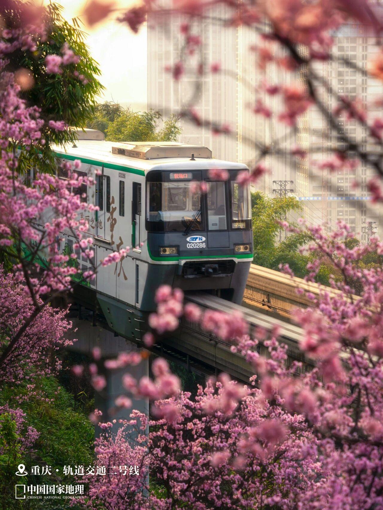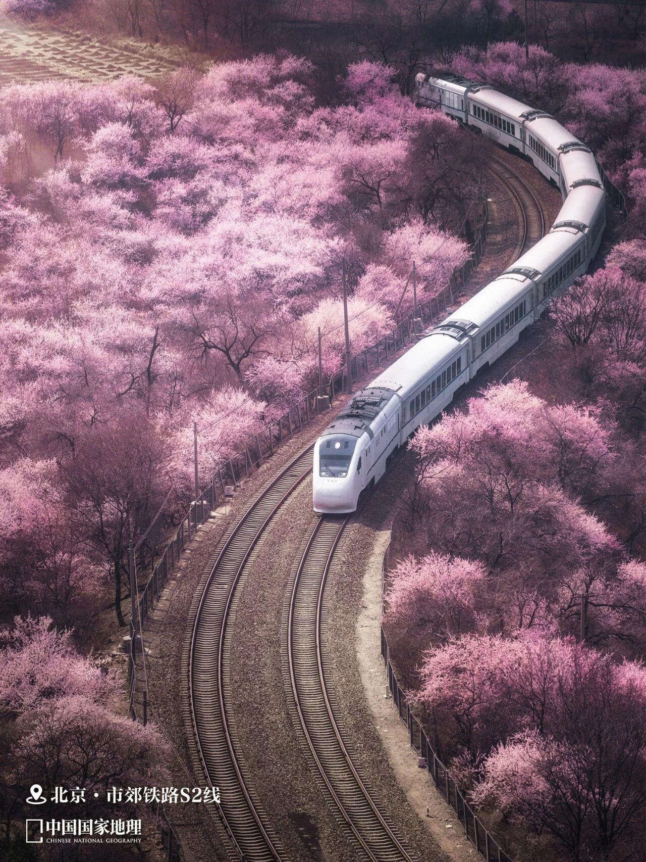 当下正值三月末,京津冀等地已然入春, 街头巷尾的玉兰悄然绽放,柳枝抽出嫩绿的新芽。 广东、广西的部分地区, 甚至已提前嗅到了初夏的气息。 暖风拂面,阳光里有了几分热意。 神州大地,春意正浓,繁花似锦。 不如寻一列开往春天的火车, 从北疆到南国, 穿行于无边的花海之中—— 岭南的梅花如粉色的云霞,轻笼山野; 异木棉开得热烈,绯红满枝,像燃烧的晚霞; 云贵高原上的油菜花铺展成金色的海洋...... 这都是春天最明亮的模样。 轻轨掠过城市,高铁飞驰田野,慢火车蜿蜒山间, 速度不同,风景却同样动人。 这一程,不只是风景, 更是被花海簇拥的温柔时光—— 跟着这趟花海列车,一路向前,一路繁花。🌸🌸🌸 图① 北京S2线穿行在居庸关花海中(3月下旬至4月中旬) 图② 重庆轨道交通二号线驶过开满梅花的佛图关公园(2-3月份) 图③ 异木棉花海下的广州有轨电车(12月-次年1月) 图④ 京沪铁路上海段高铁与油菜花同框(3月中旬至4月上旬) 图⑤ 南京园博园的樱花小火车(3月中旬至4月上旬) 图⑥ 陕西汉中动车穿过油菜花海(3月中旬至4月中旬) 图⑦ 武汉光谷月见草花海与空轨(4月下旬至5月) 图⑧ 青海门源,动车穿行在油菜花铺就的金色海洋中(7月上旬至8月上旬)