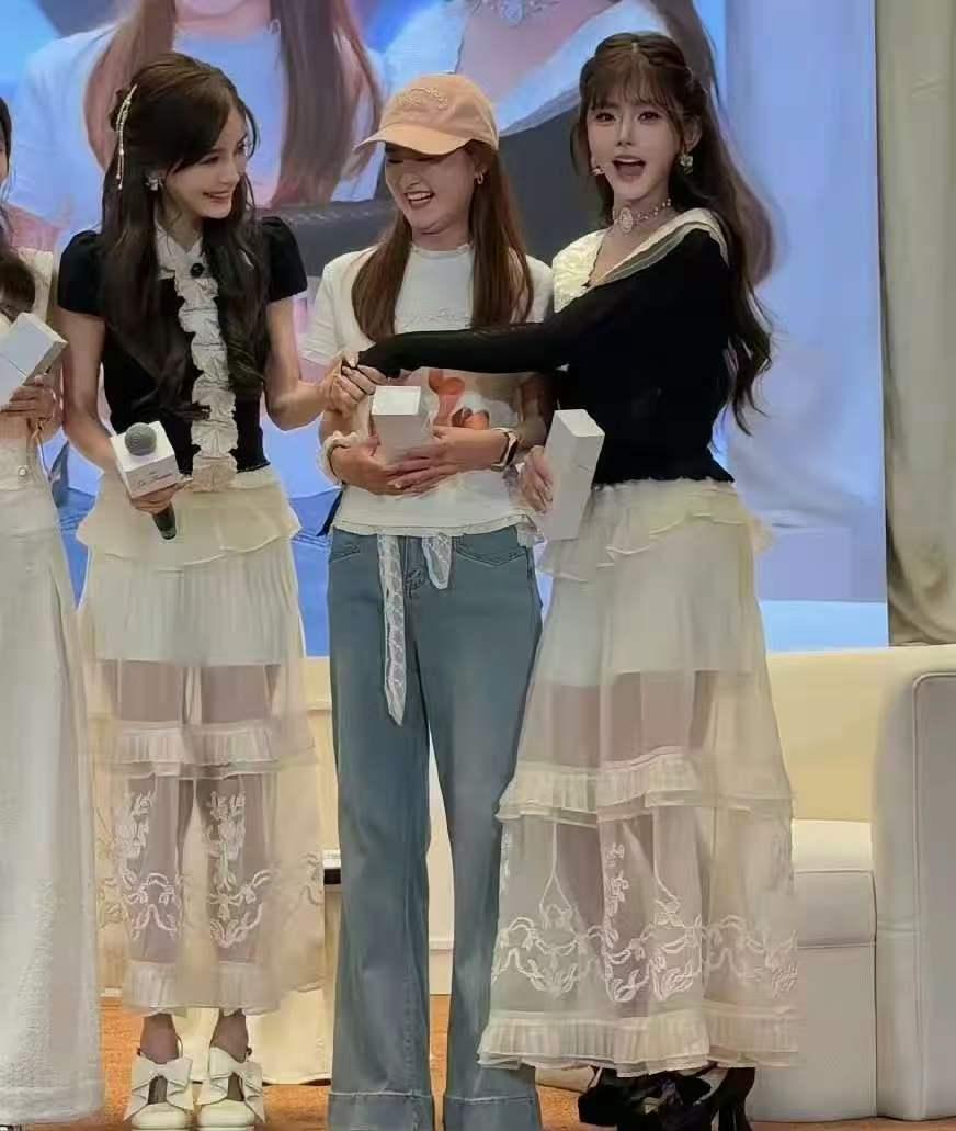Angelababy资源下降严重,自降身价和网红韩安冉同框出席品牌活动。俩人衣服撞衫,韩安冉情商挺高,她说因为一直很喜欢Angelababy,所以会经常学习她的穿搭。Angelababy出于礼貌,夸了夸韩安冉的女儿好可爱。 Angelababy曾经是85花顶流,参加时装周、走时尚红毯对她来说家常便饭。如今沦落到和争议网红分享资源,还得拉下脸面夸人家,真是一言难尽啊。