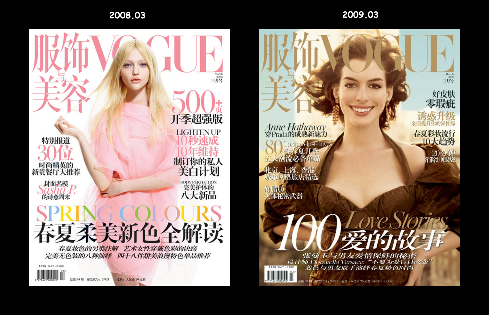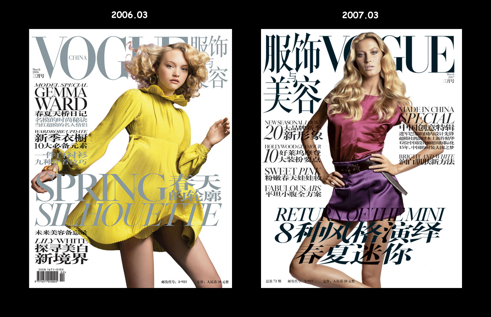 2006.03 :Gemma Ward2007.03 :Gisele Bundchen2008.03 :Sasha Pivovarova2009.03 :Anne Hathaway