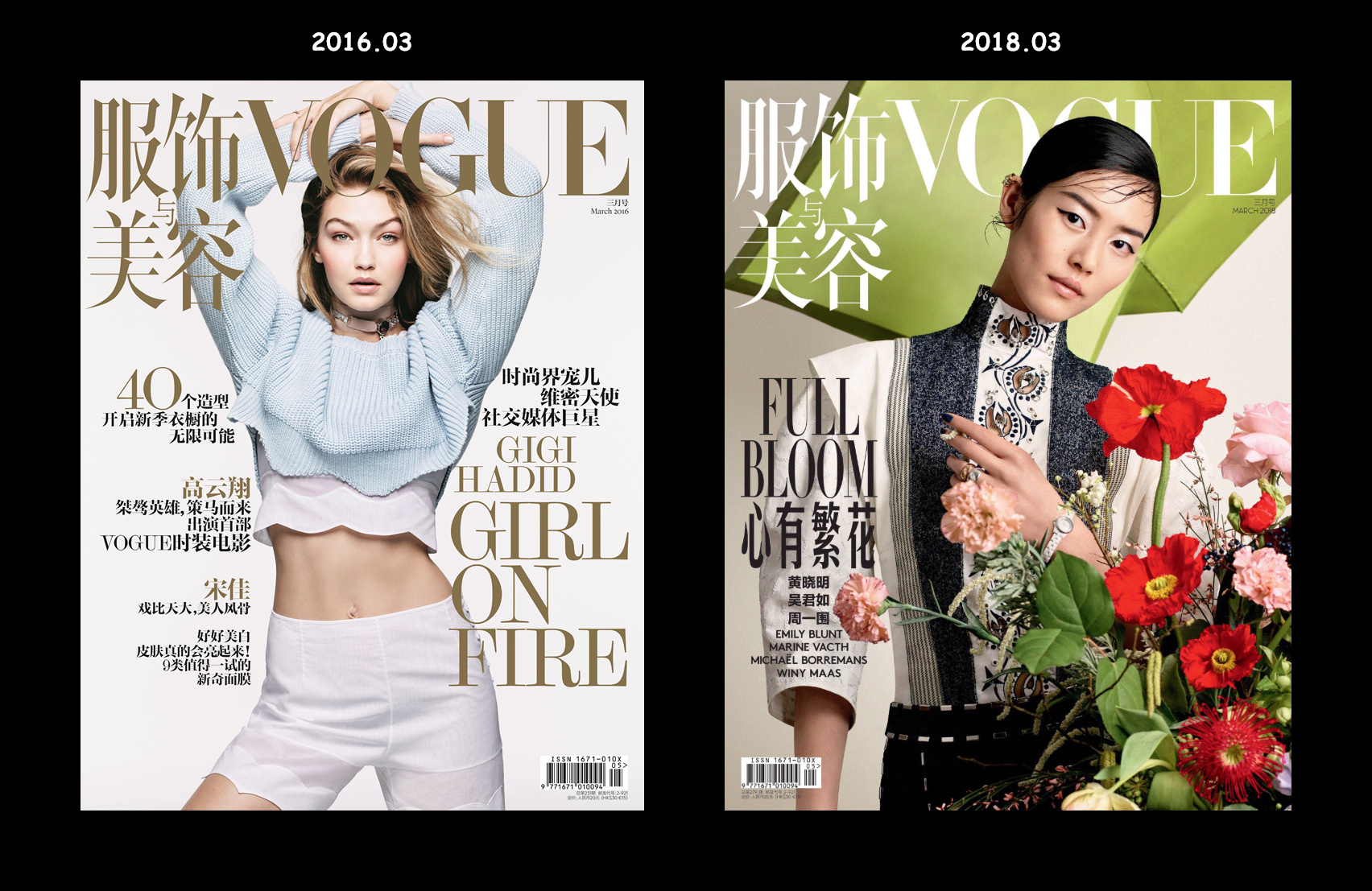 2018.03 :刘雯2019.03 :Vittoria Ceretti2020.03 :李宇春2021.03 :贺聪2022.03 :牛钰 、徐若昕 、贺聪 、马艳丽2023.03 :周迅 2024.03 :孙菲菲 2025.03 :张嘉慧2026.03 :雎晓雯 、贺聪