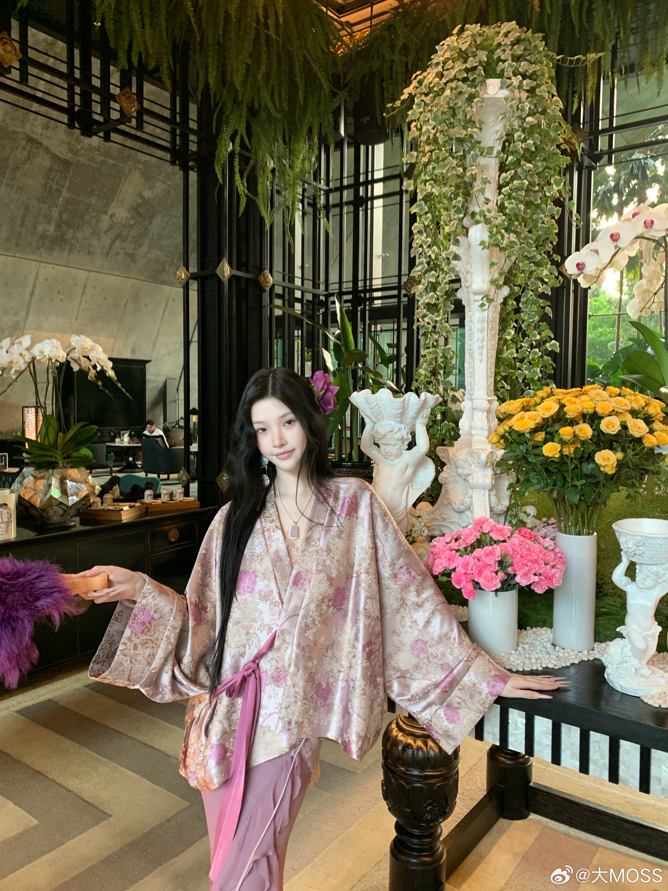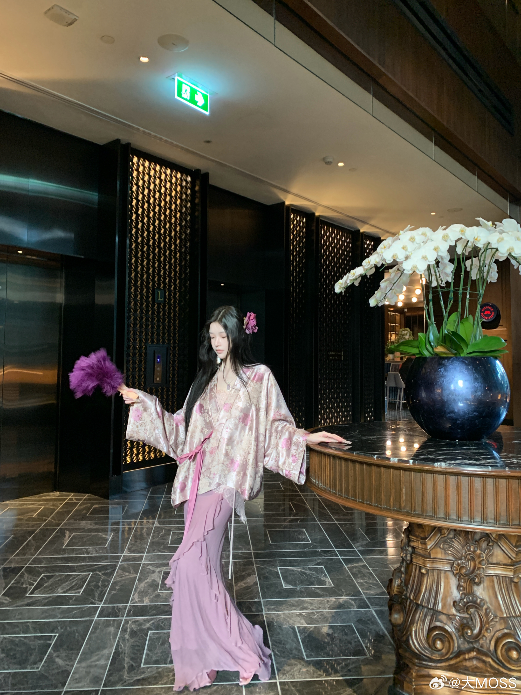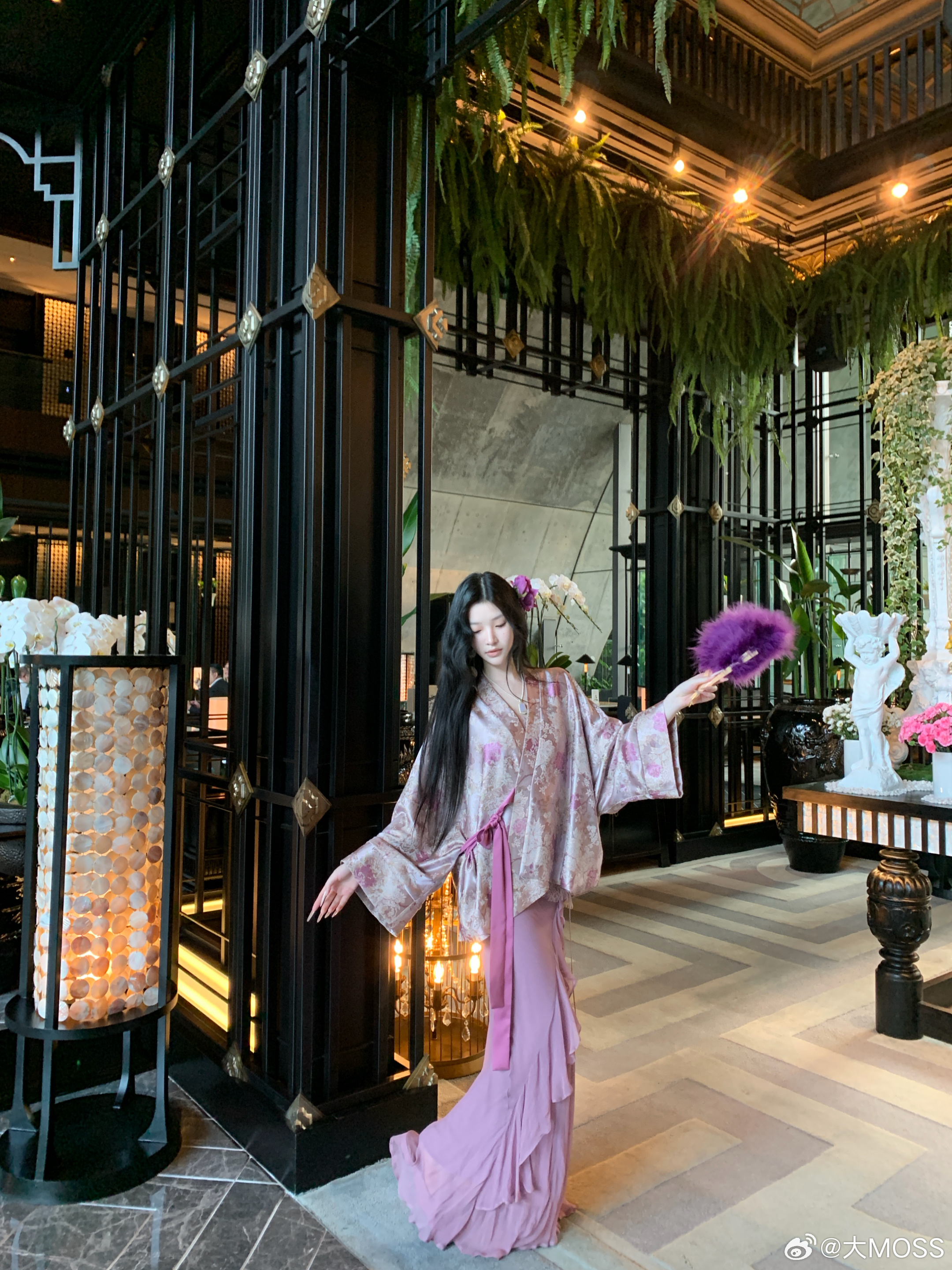 𝑴𝑶𝑺𝑺 𝟑.𝟑𝟎/𝟐𝟎:𝟎𝟎𝒑𝒎【吟华沉香】🪻🪻新中式人棉提花系帯外套+半裙套装浅暮光紫的底色自带温柔滤镜,搭配金色与粉紫交织的提花繁花纹样,牡丹、缠枝等传统花卉图案在面料上自然铺展~裙子侧边错落的木耳边如同浪漫的褶皱浪花,随着步伐流动,赋予裙装灵动的呼吸感。版型自然优化身材比例。新中式