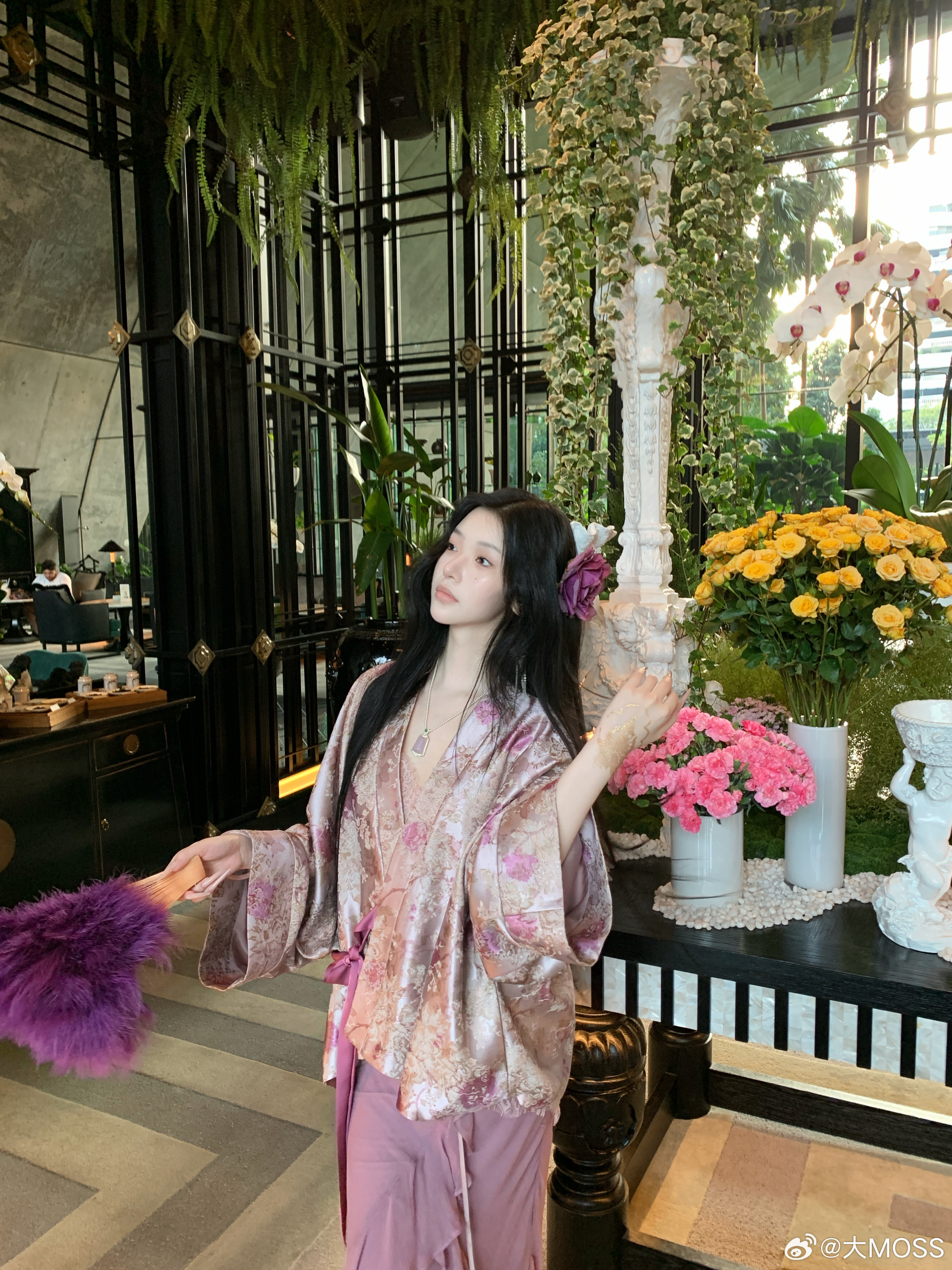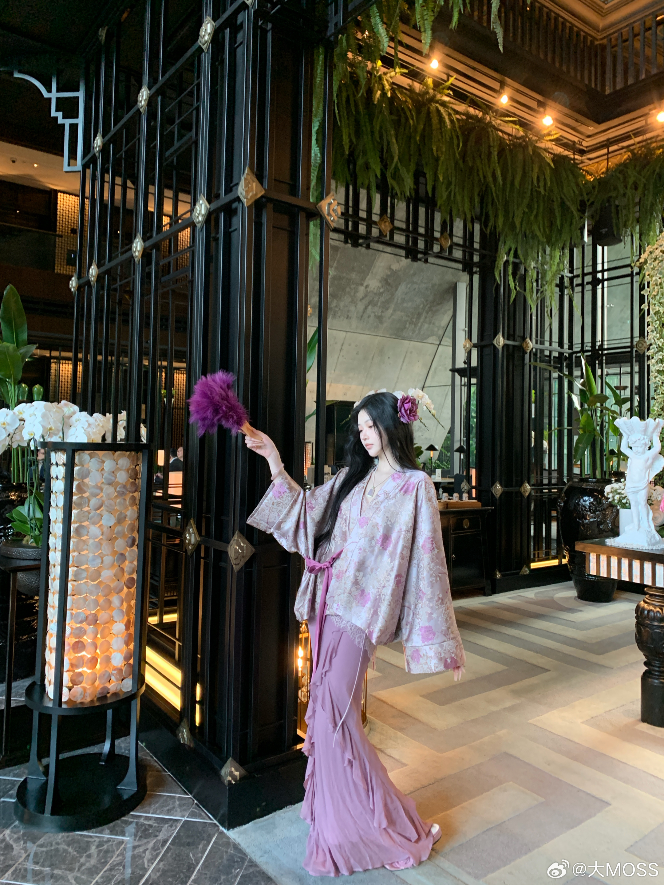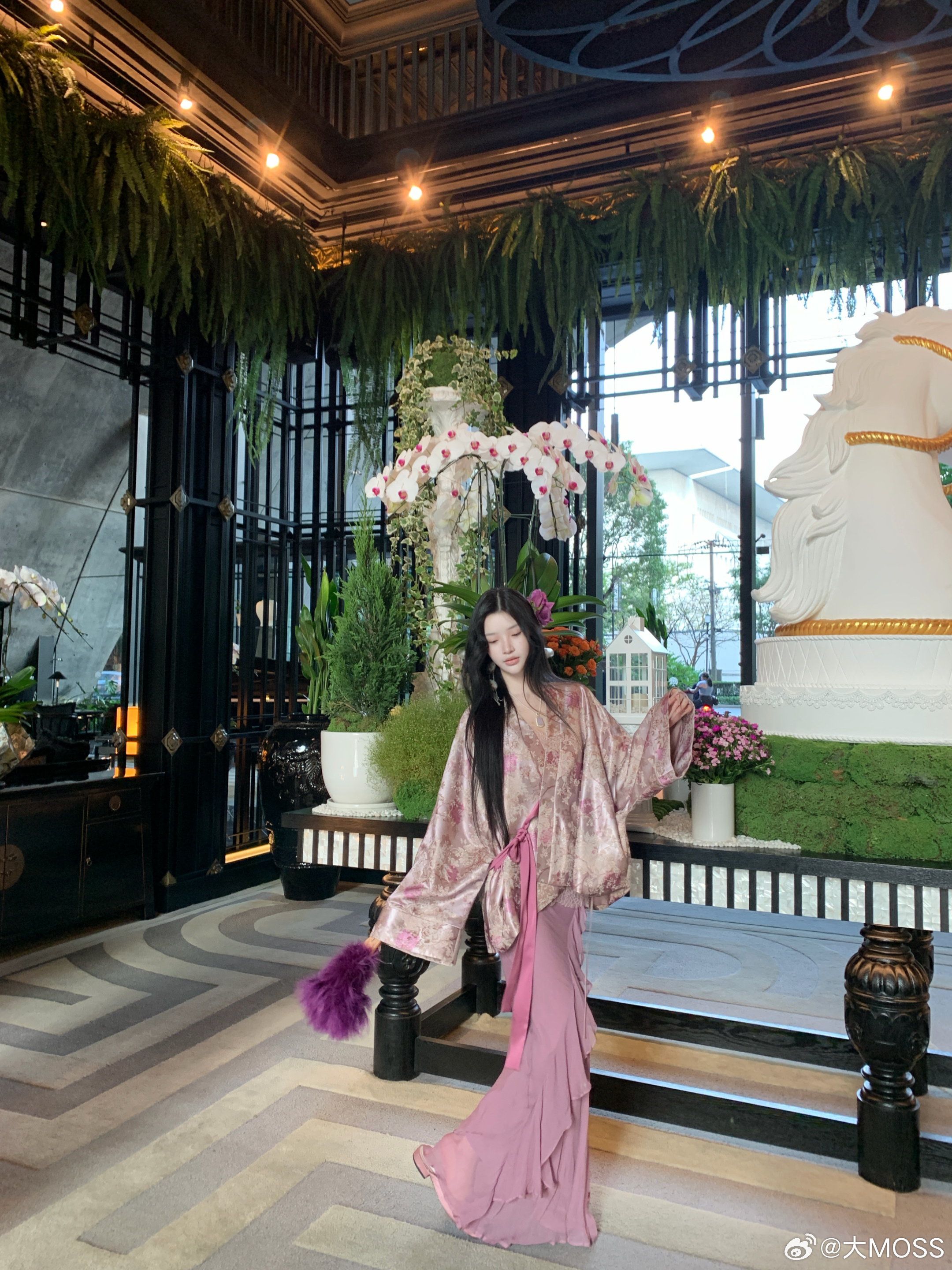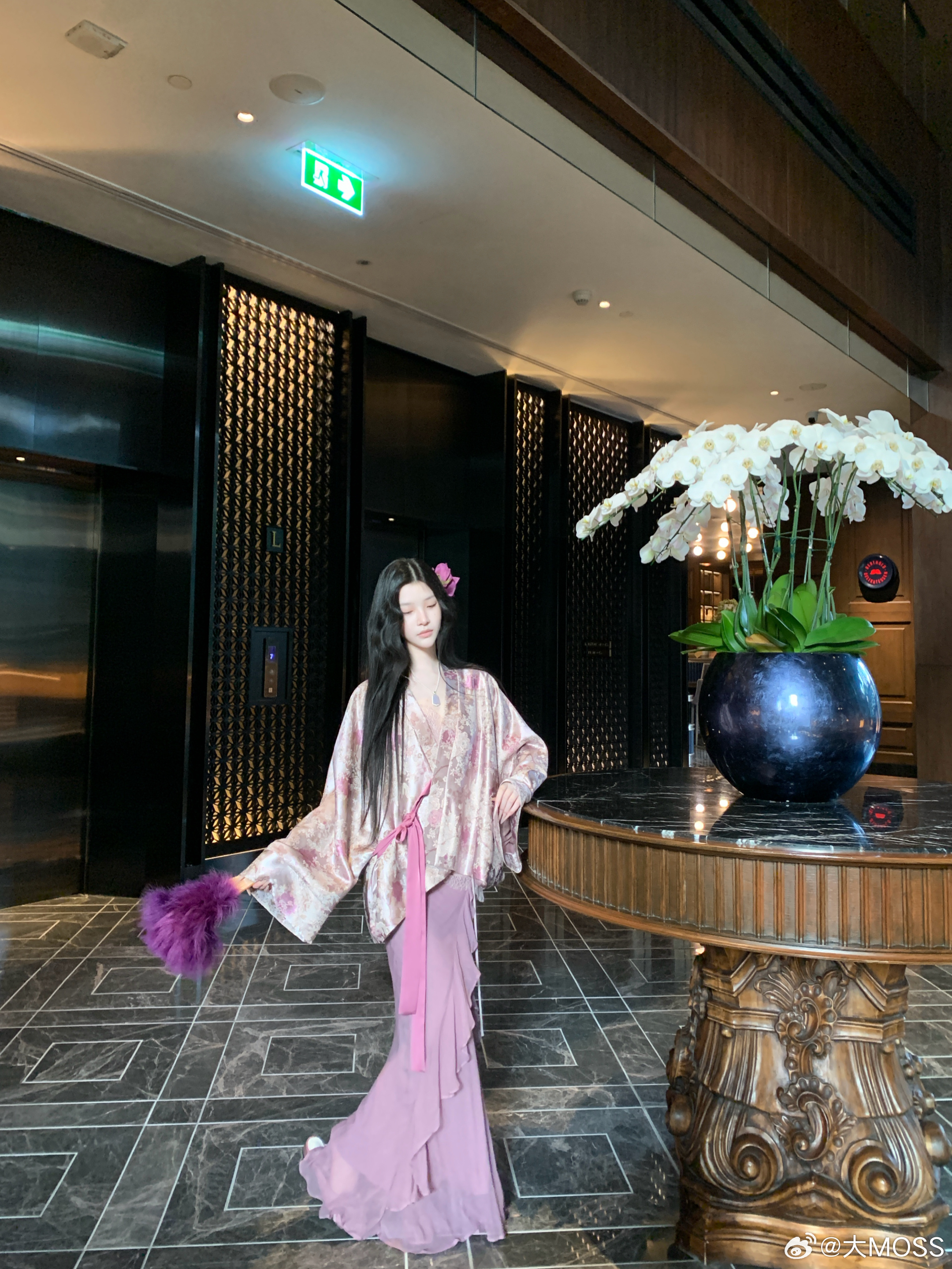 𝑴𝑶𝑺𝑺 𝟑.𝟑𝟎/𝟐𝟎:𝟎𝟎𝒑𝒎【吟华沉香】🪻🪻新中式人棉提花系帯外套+半裙套装浅暮光紫的底色自带温柔滤镜,搭配金色与粉紫交织的提花繁花纹样,牡丹、缠枝等传统花卉图案在面料上自然铺展~裙子侧边错落的木耳边如同浪漫的褶皱浪花,随着步伐流动,赋予裙装灵动的呼吸感。版型自然优化身材比例。新中式