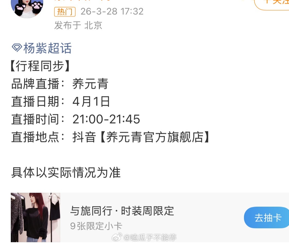 杨紫又有新的商务直播了,期待这次美女的造型