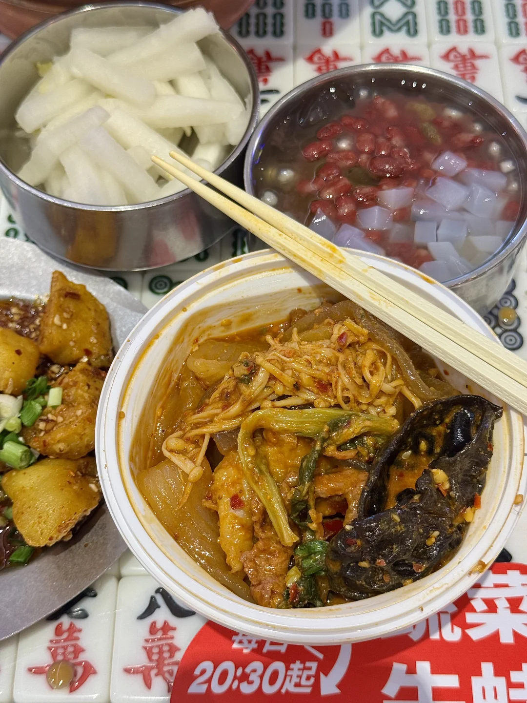 不愧是老吃家,黏黏糊糊巨美味👍🏻 点了满满一碗几分钟就光盘。。。 边吃麻辣拌再来一口冰粉 幸福晕咯🫕