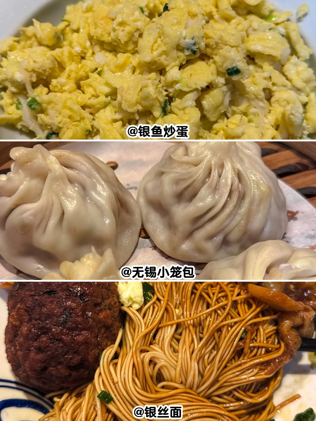 ▫️堂食:银丝面、银鱼炒蛋、无锡小笼包