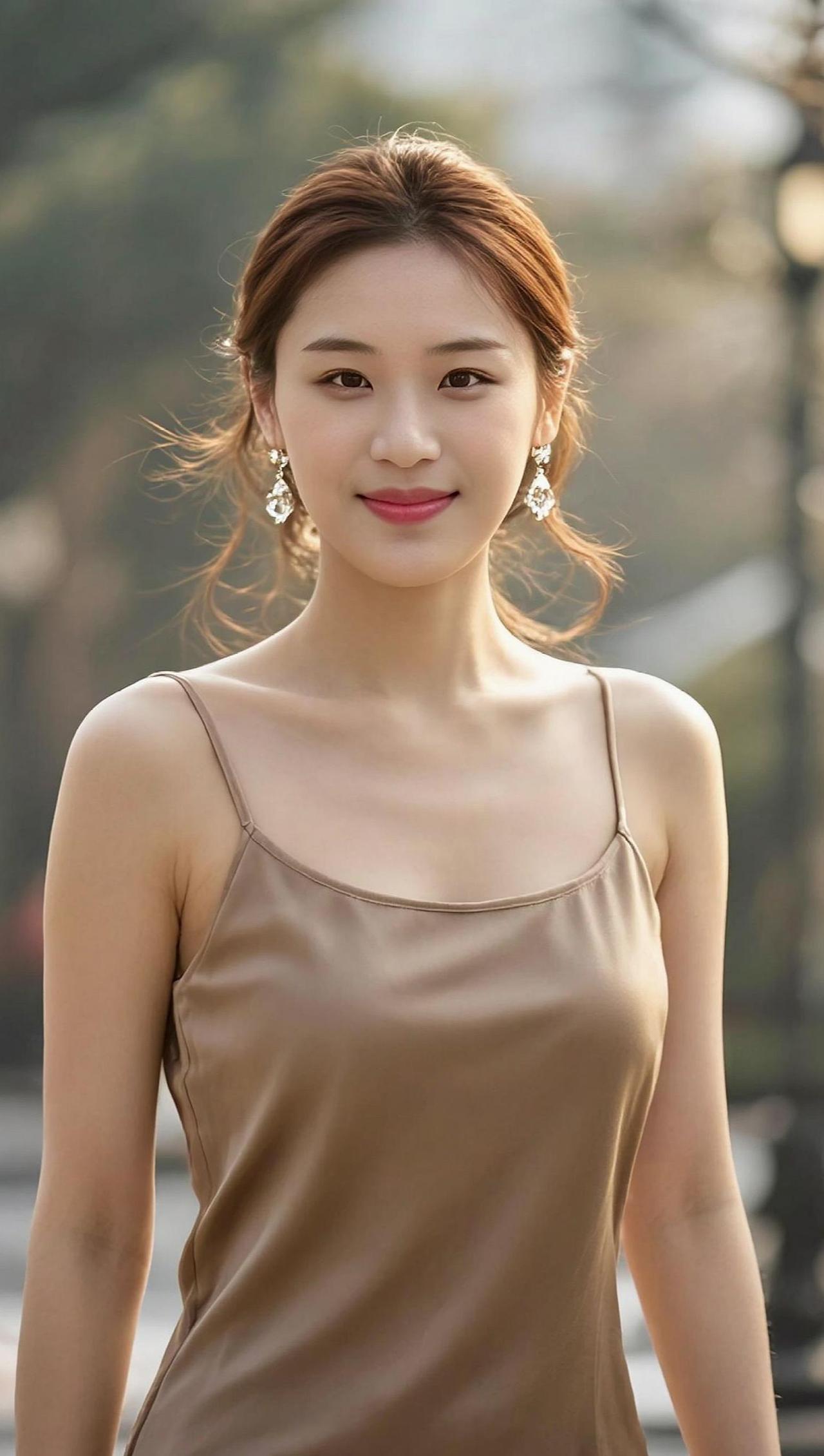 晚风拂过发梢,像一句未说完的告白。她站在光里,肩带轻垂,仿佛时光也放慢了脚步。这