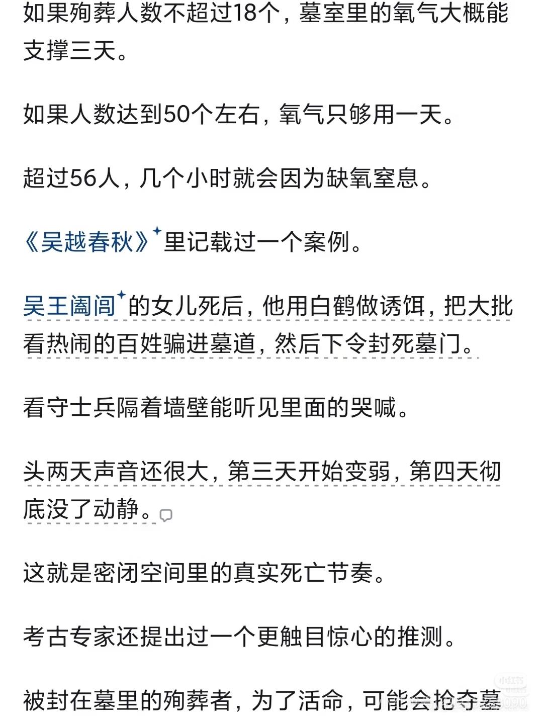 殉葬的陪葬人在墓里面能活多久? 更多的殉葬者是死于被活埋。晋文公请隧就说明了当时