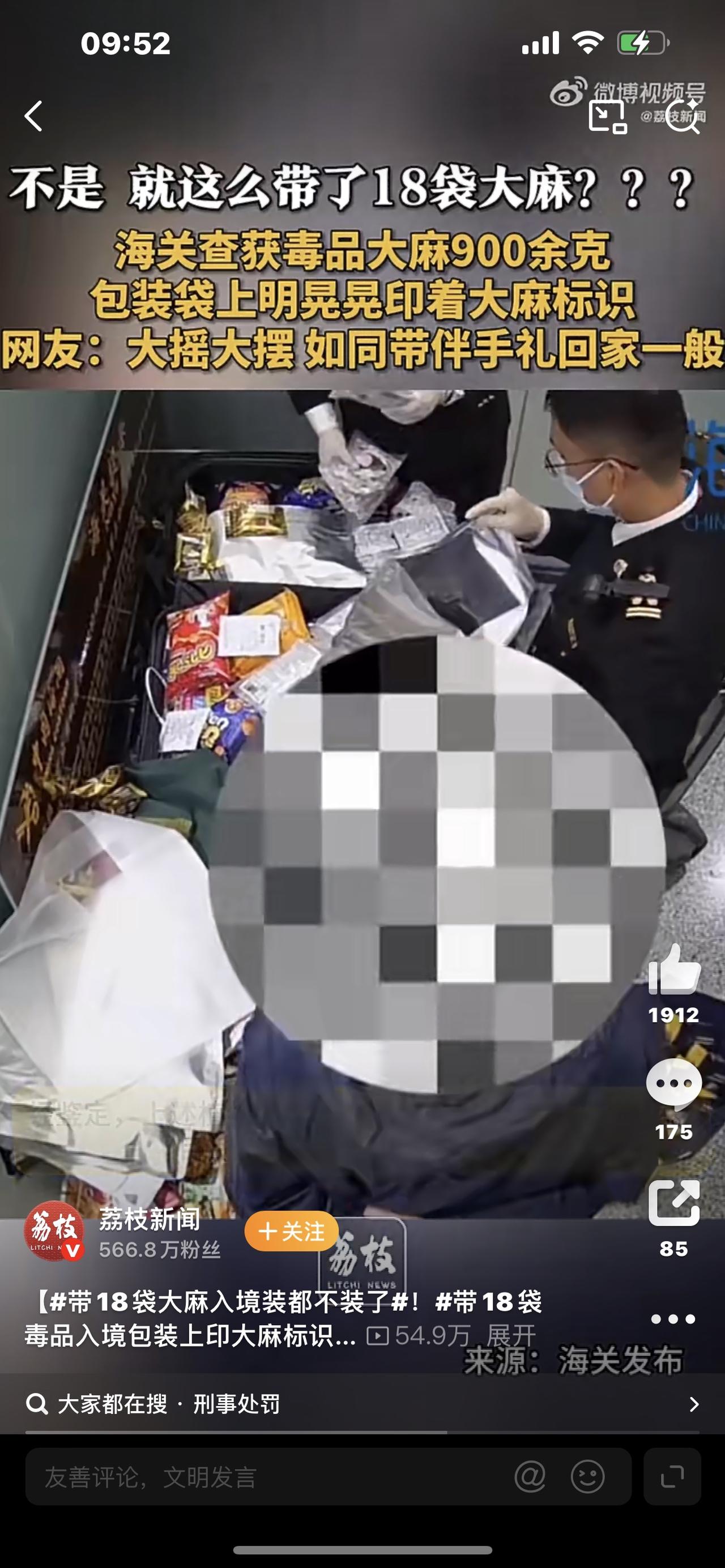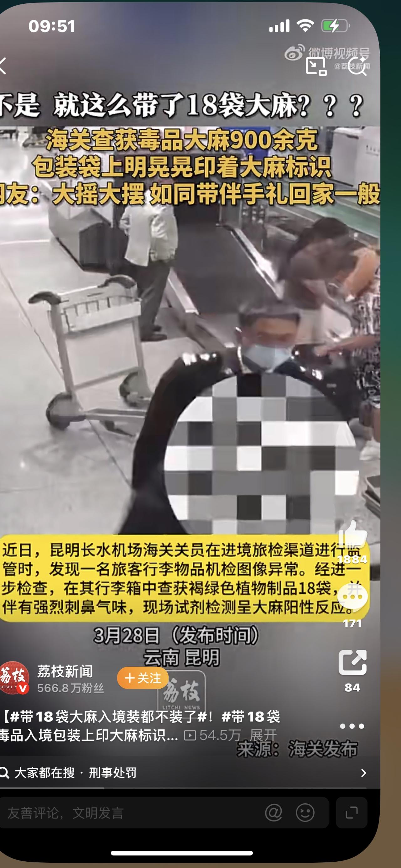 胆大包天!带18袋大麻入境,包装印大麻标识,海关当场拿下! 见过嚣张的,没见过这么嚣张的! 昆明机场海关查获一起离谱走私案:一旅客行李箱里,整整18袋大麻,包装上明晃晃印着大麻图案,连装都不装,直接大摇大摆闯关! 网友炸锅:这是把海关当空气?还是把法律当摆设? 3月9日,昆明长水机场海关机检时,发现一旅客行李图像异常,当即开箱检查。 开箱瞬间,18袋褐绿色植物制品散落,刺鼻气味直冲鼻腔,包装袋上大麻标识清晰可见。 检测结果:全部是毒品大麻,净重907.4克,接近1公斤。 更讽刺的是: 毒贩常用咖啡、零食、家具伪装藏毒,这次竟连伪装都省了,直接印毒标,仿佛在挑衅:“我带的就是毒品,你能奈我何?” 法律红线碰不得: 我国法律明确规定,大麻是毒品,走私、贩卖、运输、制造毒品,无论数量多少,都要追究刑事责任。 907.4克已达“数量较大”标准,这名旅客将面临7年以上有期徒刑,人生彻底毁于一旦。 很多人有误区:觉得“大麻不算毒”,境外能吸就能带。 醒醒!在我国,大麻是严格管制的毒品,携带入境就是犯罪,别拿自由和前途赌侥幸。 我们愤怒,不只是因为这18袋毒品,更是因为有人公然践踏法律、漠视生命。 毒品是万恶之源,一旦沾染,家破人亡、一生尽毁。 海关严查,是守护国门,更是守护每个家庭的安宁。 别信“大麻无害”的鬼话,别抱“藏得好就没事”的幻想。 天网恢恢,疏而不漏,对毒品零容忍,才是对自己和家人最大的负责。 珍爱生命,远离毒品;国门有我,毒贩无路可逃!走私普通货物案 走私贩毒 法国大麻