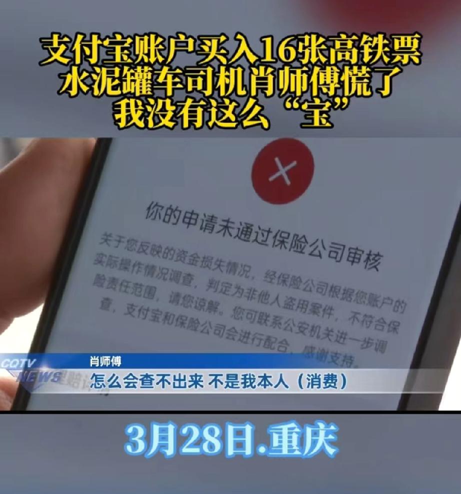 “没天理了!”重庆,男子的支付宝突然出现三笔大额交易,莫名其妙的被购买了16张高铁票,他并没有买过火车票,怀疑这是支付宝被盗刷,联系支付宝客服求助。客服先是告诉他,有账户安全险,不用担心。可谁知,一天后,客服又表示他这属于非他人盗刷,不在理赔范围内。男子:制定规则是他,说不赔也是他,现在还要我举证这是被盗刷。 肖师傅说重庆的一个水泥罐车司机,他的支付宝在不知情的情况下,突然被人分几笔买了16张高铁票,一万多元不翼而飞。 3月24号早上6点多,肖师傅像往常一样开着水泥罐车出车拉货,行驶到半路的时候,他的手机突然弹出一条银行扣款短信。 当时他正在开车,不敢仔细看,只能用余光匆匆瞄了一眼,这一看可把他吓了一跳,短信显示被铁路局扣了7000多块钱。 肖师傅心里立马犯嘀咕,他压根没买过火车票,怎么会突然被扣这么多钱? 他心里越想越慌,还没等他琢磨明白,手机又接连收到好几条扣款短信,一笔接着一笔的扣费提醒,让肖师傅彻底慌了神,满脑子都是担心,生怕钱被越扣越多。 好不容易赶到工地,肖师傅立马停下车,赶紧点开手机查看,这才发现,除了最开始扣的7000多,他的花呗也被刷走了3000多,几笔交易加起来,一共被买了16张高铁车票,总共花了一万多元。 肖师傅第一时间给妻子打去电话,着急地问是不是妻子用他的支付宝买了票。可妻子明确表示,她从来没登过丈夫的支付宝,两人一直都是各用各的账号,根本没动过他的钱。 肖师傅这才确定,支付宝肯定是被人盗刷了,他赶紧拨打报警电话,同时立刻赶往最近的重庆东站,想查清楚这些车票到底是谁买的、是谁乘车。 到了重庆东站,肖师傅仔细核对后发现,盗刷者一共操作了四笔交易,先是试探性操作了一笔,发现能成功后,紧接着就刷了7686元买了14张票,第三笔又花3392元买了2张一等座,最后一笔因为支付宝检测到交易异常,直接关闭了支付才没成功。 可因为涉及用户隐私,车站工作人员没法把购票人和乘车人的具体信息告诉肖师傅,只能证明这些票不是肖师傅自己的12306账号买的,想要详细信息,必须要警方出面调取。 这边肖师傅忙着找车站核实,另一边也赶紧联系了支付宝客服反映情况,希望能把这笔钱,追回来。 一开始,客服告诉肖师傅,他的支付宝有账户安全险,让他不用太担心,肖师傅一听,心里顿时松了口气,想着有保险理赔,应该不会有太大损失。 万万没想到,仅仅过了一天多,支付宝客服再次联系他,说辞直接来个180度的转弯。 这一次,客服告诉他,这几笔交易属于非他人盗刷,不在保险理赔范围内,拒绝赔付。 这个消息让肖师傅彻底懵了,这分明就是支付宝被盗刷,怎么就不认账了呢? 更何况,支付宝有三重安全验证,刷脸、指纹、支付密码,平台明明能查到不是他本人操作的,现在却制定规则的是他们,拒绝理赔的也是他们。 最气人的是,支付宝客服还让肖师傅举证是被盗刷,肖师傅一肚子的委屈,觉得这实在太不讲理。 肖师傅怀疑,自己的手机可能是不小心点到了弹窗病毒,才让骗子有了可乘之机,但不管怎么说,这就是被人盗刷,支付宝的账户安全险理应理赔。 如今他只希望办案民警能尽快到火车站,调取到购票人的信息,只要能证明不是自己操作的,支付宝就没有理由再拒绝赔付。 目前,警方已经介入调查,这件事还在进一步处理中。 最高法《关于审理银行卡民事纠纷案件若干问题的规定》第四条明确规定:持卡人主张争议交易为网络盗刷交易的,可以提供报警记录、交易明细等证明。 发卡行、非银行支付机构主张是本人或授权交易的,应当承担举证责任。 肖师傅没有操作、也没有授权,异地批量购买16张高铁票,明显属于网络盗刷。 按照规定,支付宝应当举证是肖师傅本人或者授权交易,例如肖师傅刷脸、透露密码等情况,而不是让肖师傅自证被盗。 账户安全险保障的就是账户被盗取,发生盗用后应当予以赔偿。如今支付宝以非他人盗刷拒赔,缺乏事实与法律依据。 综上,支付宝没有尽到安全保障与异常交易拦截义务,应当按保险条款先行赔付。