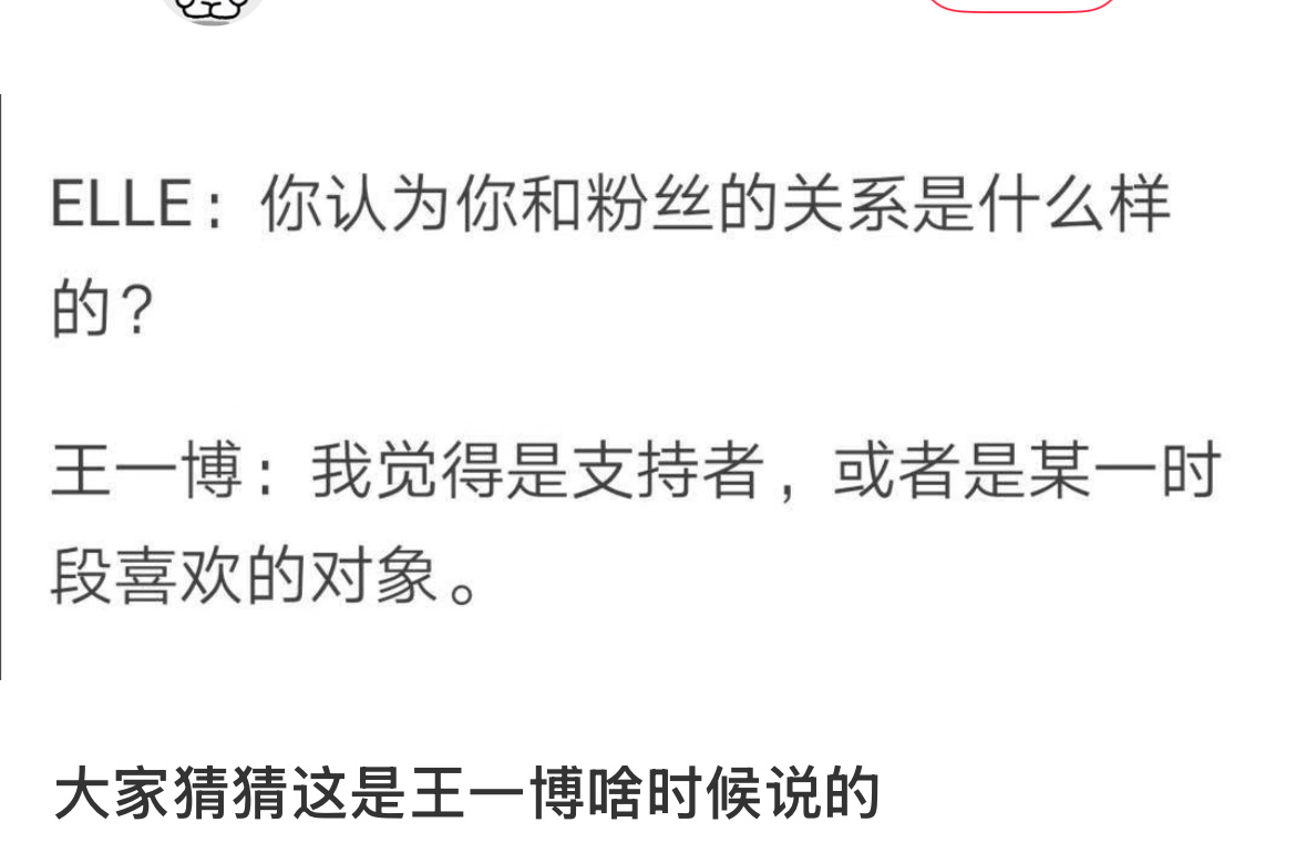 粉丝是什么?王一博:我觉得是支持者,或者某一时段喜欢的对象。这是19年3月还没大火的时候说的,那时候他就已经是人间清醒了。可是ibo一直喜欢他,喜欢了七年了。