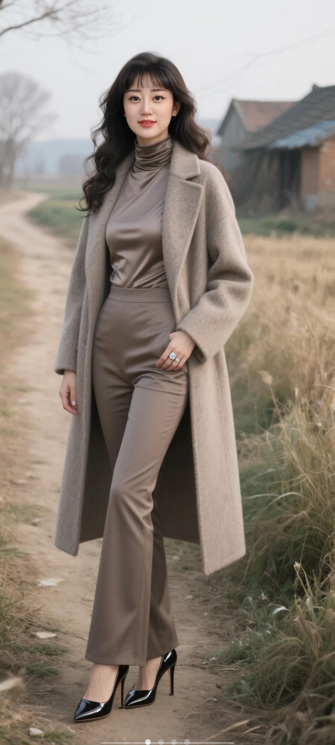 温柔晚霞下的优雅女神,粉色礼服与白色毛绒外套的完美搭配,尽显高贵与浪漫。