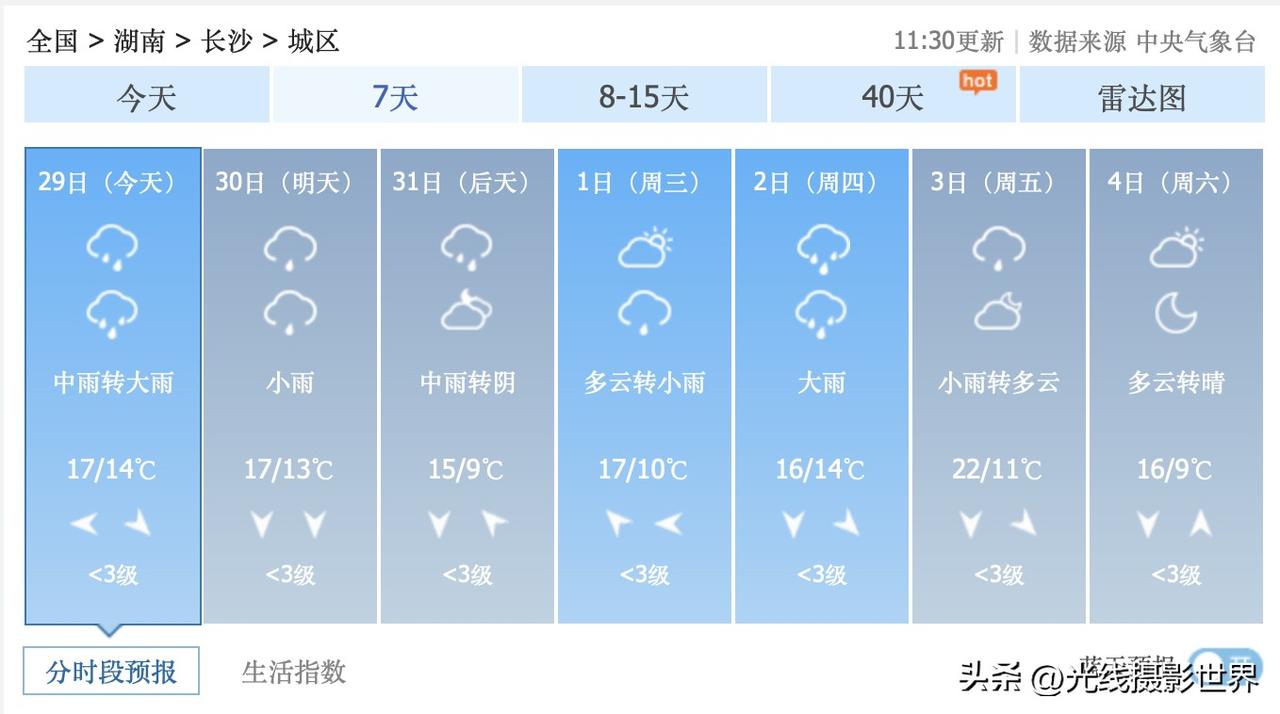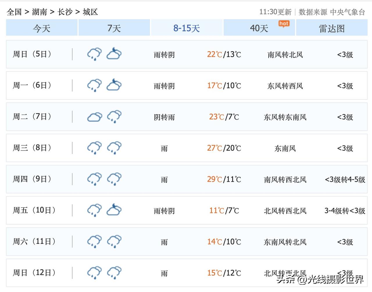 好难得哟!湖南省长沙市,下周终于要出太阳啦!4月1日,星期三,长沙市多云,这不仅仅是中央气象台的天气预报这么显示,苹果iphone手机自带天气预报也是这么说的哦!看来,4月1日,长沙市估计大概率是要出太阳啦!希望不是愚人节的节目哦! 在接下来,4月4日,星期六,长沙市也可能有太阳……这是中央气象台的最新天气…… 但是,总体来说,3月29日到4月12日,中长期天气预报大趋势认为,未来10天半个月,长沙市,阴雨连绵是主旋律……阳光很稀缺……清明节假期,长沙市大概率还是会持续阴雨天,泡在水里估计是清明时节雨纷纷的常态…… 2026年3月,长沙的雨水真的太多了……真没想到,最新天气预报,居然认为4月上旬依旧是阴雨连绵为主旋律……就这样吧! 如果想念阳光,那最好还是去云南吧!昆明,大理,丽江,西双版纳泼水节!