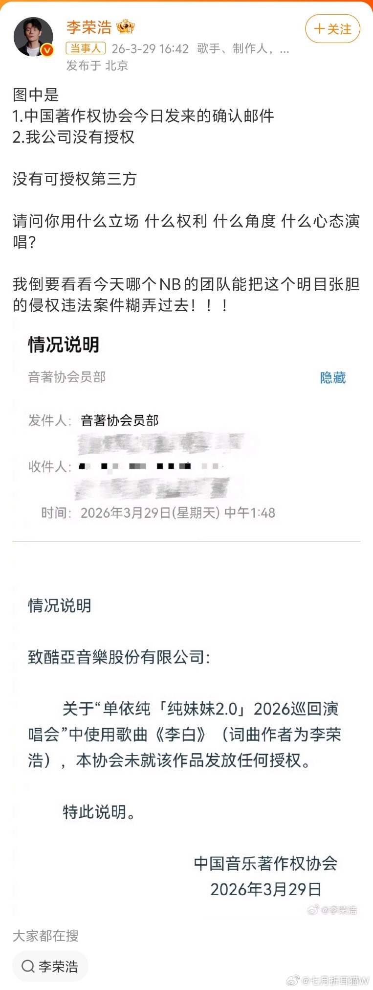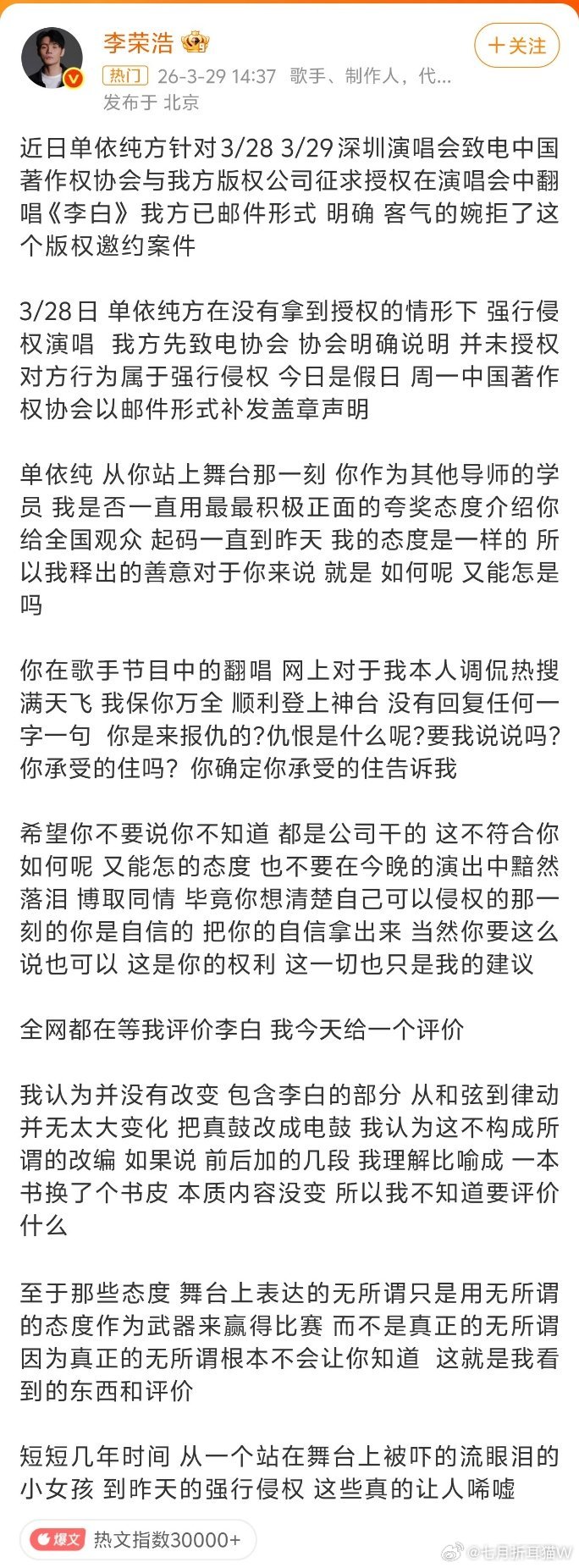 总结目前进度,李荣浩 单依纯强行侵权李荣浩对单依纯的侵权行为非常生气,直接开撕,