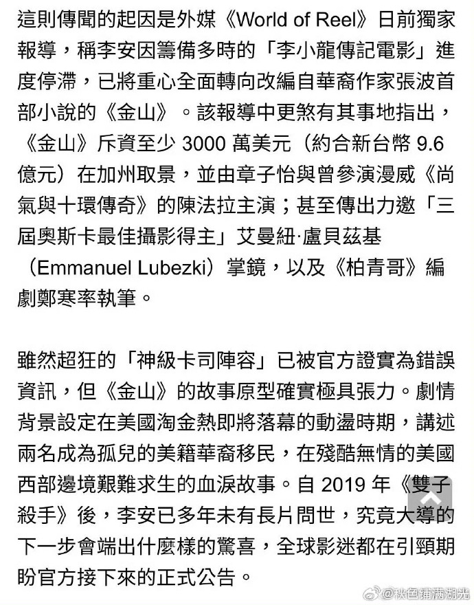 李安助理否认章子怡主演金山章子怡不出演金山 李安助理辟谣章子怡出演金山