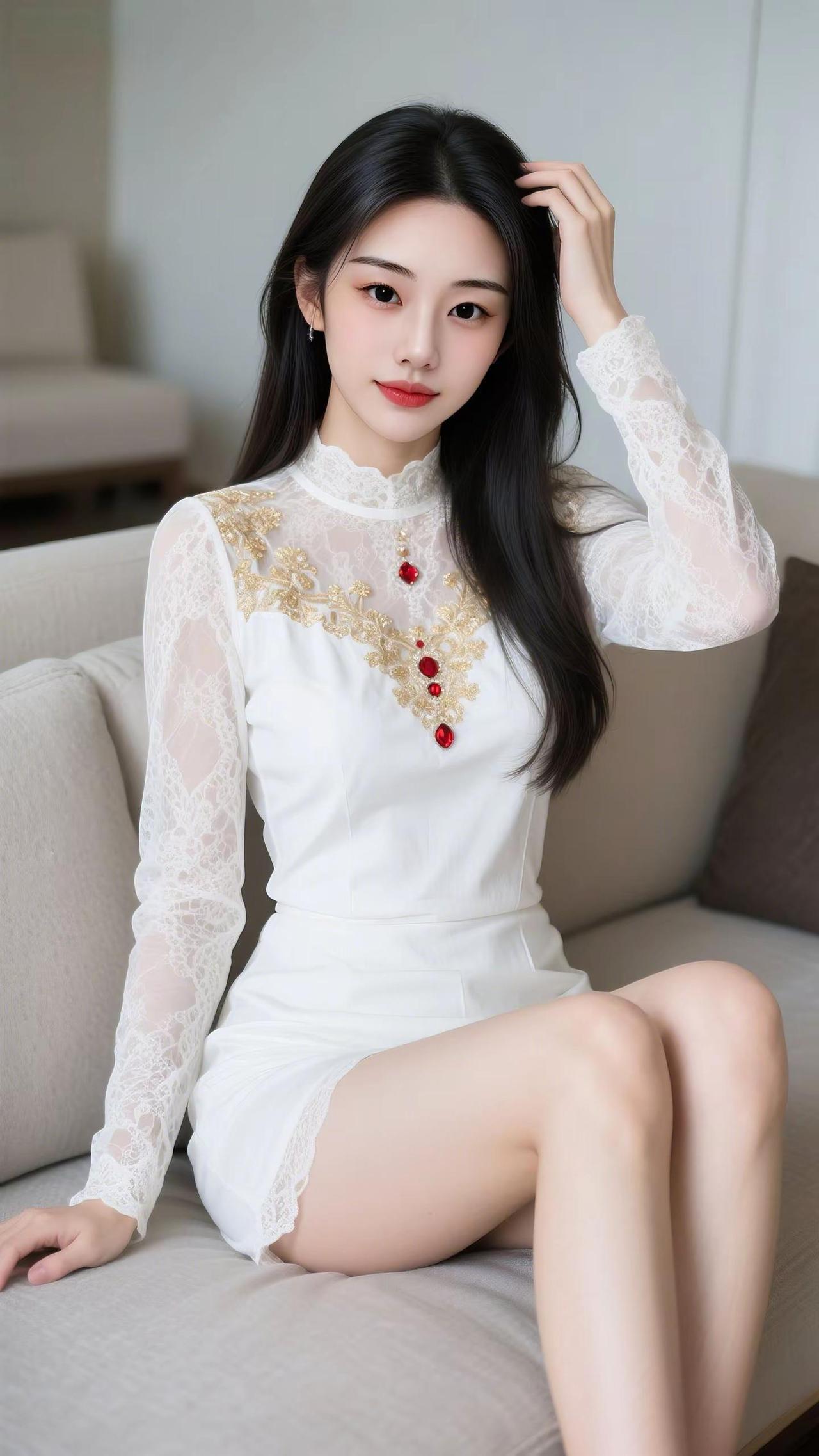 一袭白纱蕾丝,勾勒出温柔又精致的轮廓,金线与红宝点缀,自带清冷贵气感。眉眼温婉,气质绝尘,慵懒坐姿藏不住的高级氛围感。温柔与疏离并存,纯欲感拉满,美得恰到好处,每一帧都像画报📸 纯欲天花板 氛围感美女