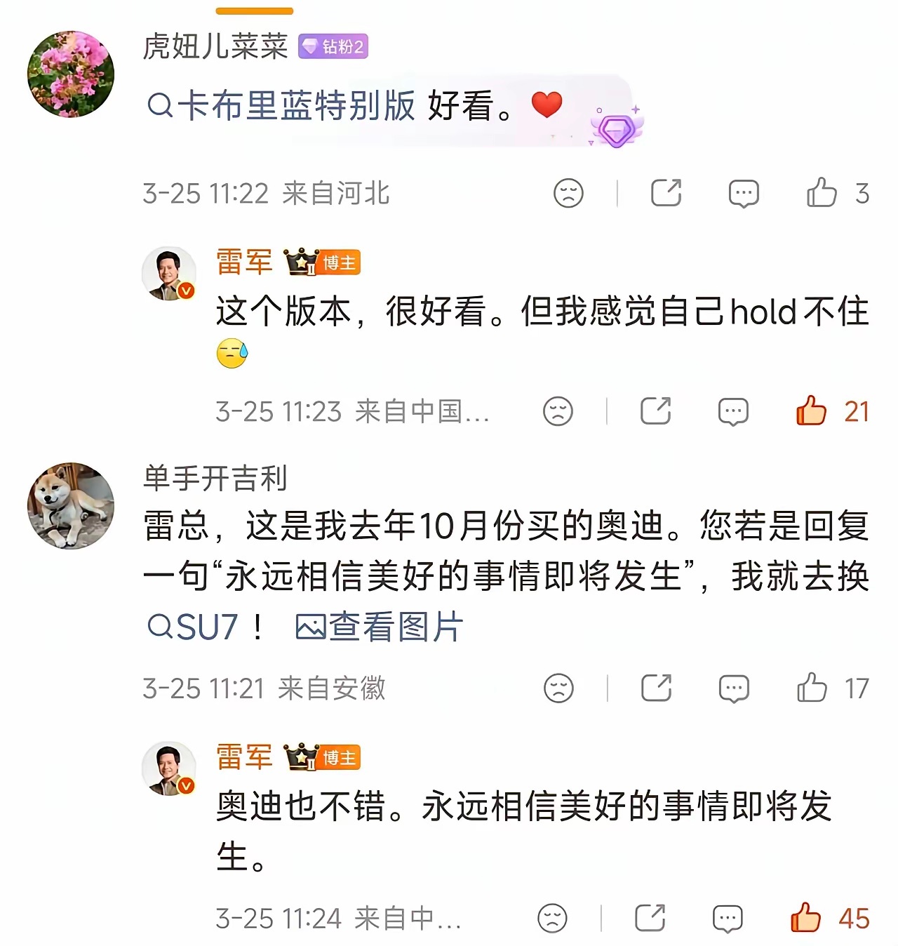 ,开的是奥迪,换了台SU7。这兄弟牛就牛在,奥迪是去年10月买的,才不到半年。雷