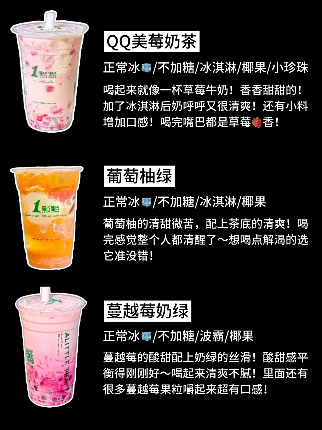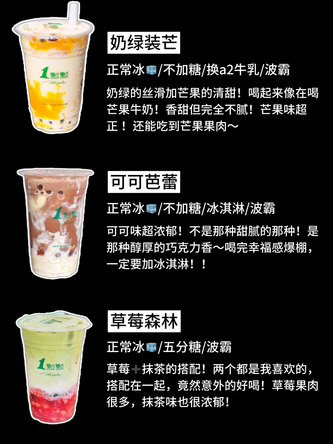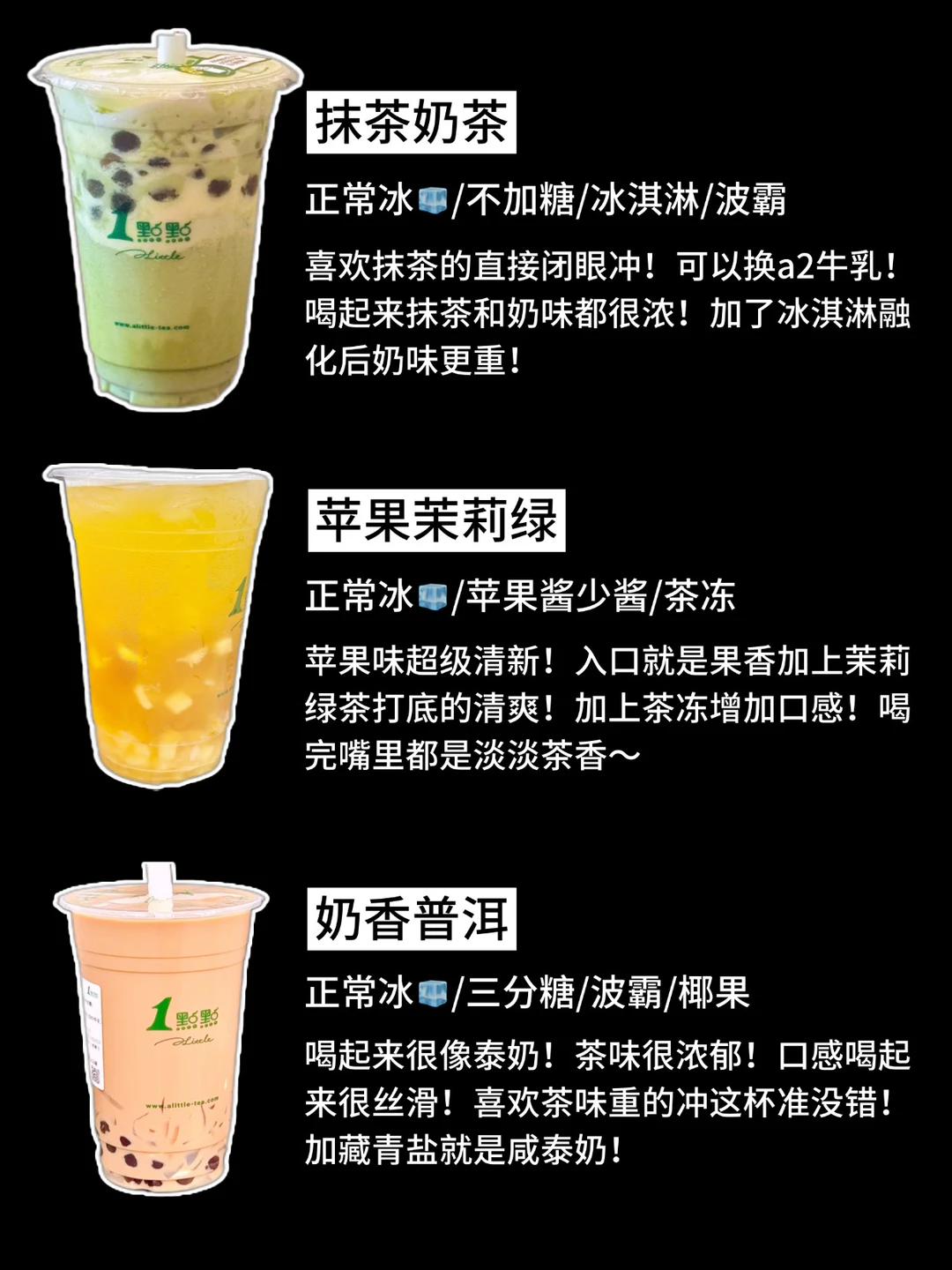 🤩姐妹们🔥一点点这几杯的隐藏喝法真的没对手💫每一款都是亲测好喝!老喝家版💗喜欢喝一点点的宝宝收藏哦~ 1️⃣qq美莓奶茶 2️⃣奶香普洱 3️⃣抹茶奶茶 4️⃣葡萄柚绿 5️⃣蔓越莓奶绿 6️⃣奶绿装芒 7️⃣可可芭蕾 8️⃣苹果茉莉绿 9️⃣草莓森林 🔥无广纯分享,喜欢多多点赞,感谢支持!