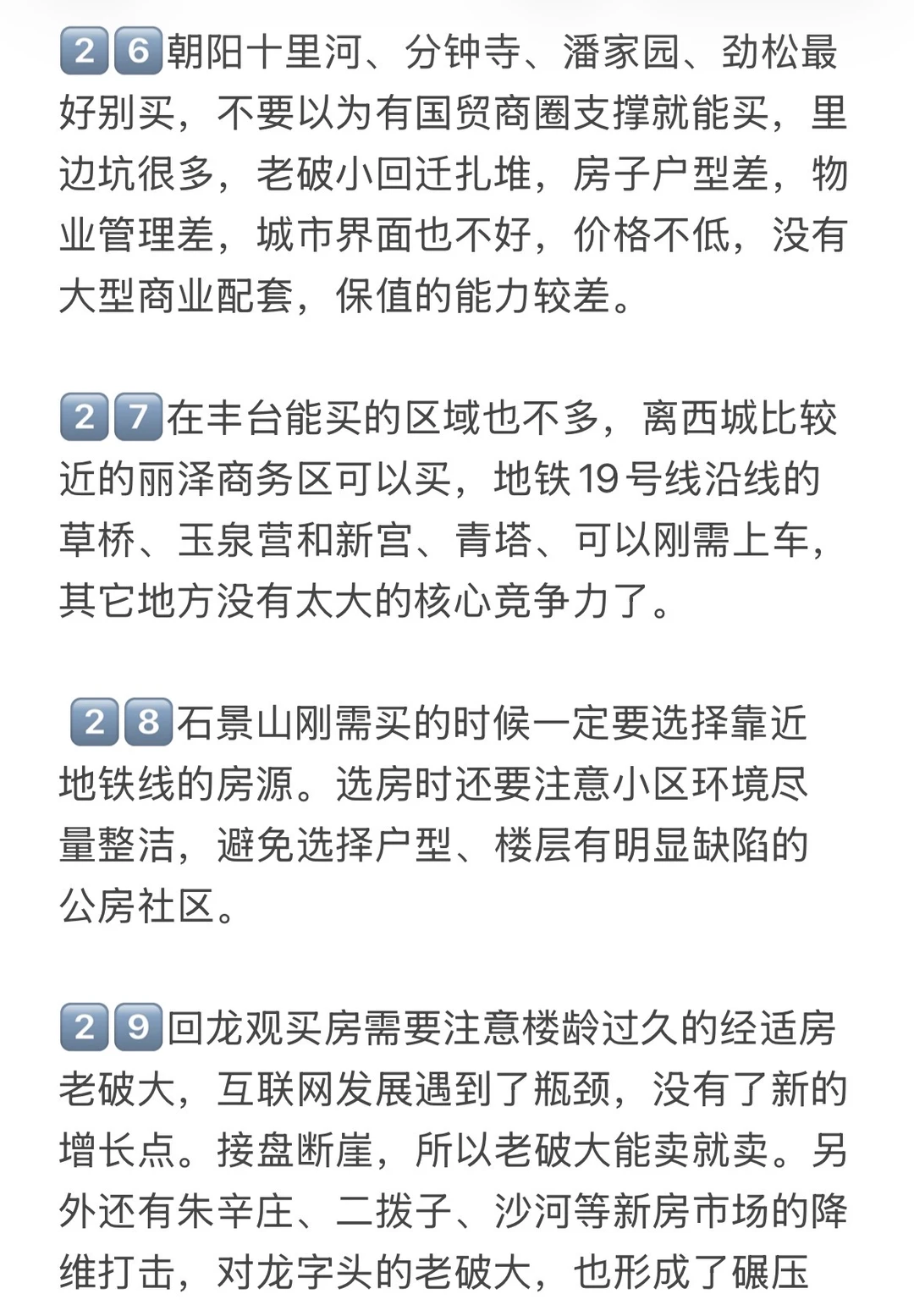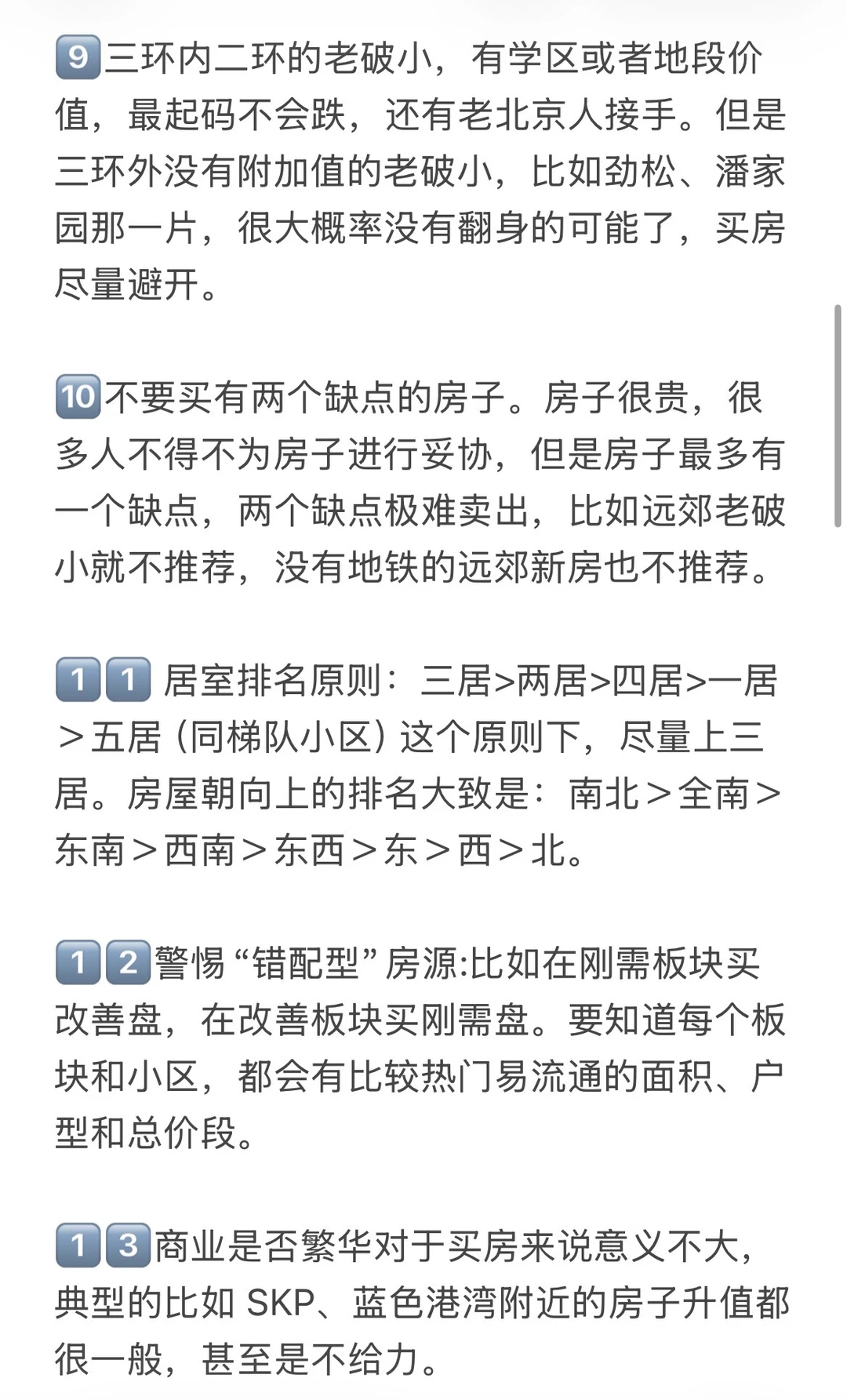 1️⃣ 未来北京不会有大涨普涨的时候了。你的房子如果是在远郊和老破小,现在会跌,将来大概率也不会涨,要认清并接受这个现实