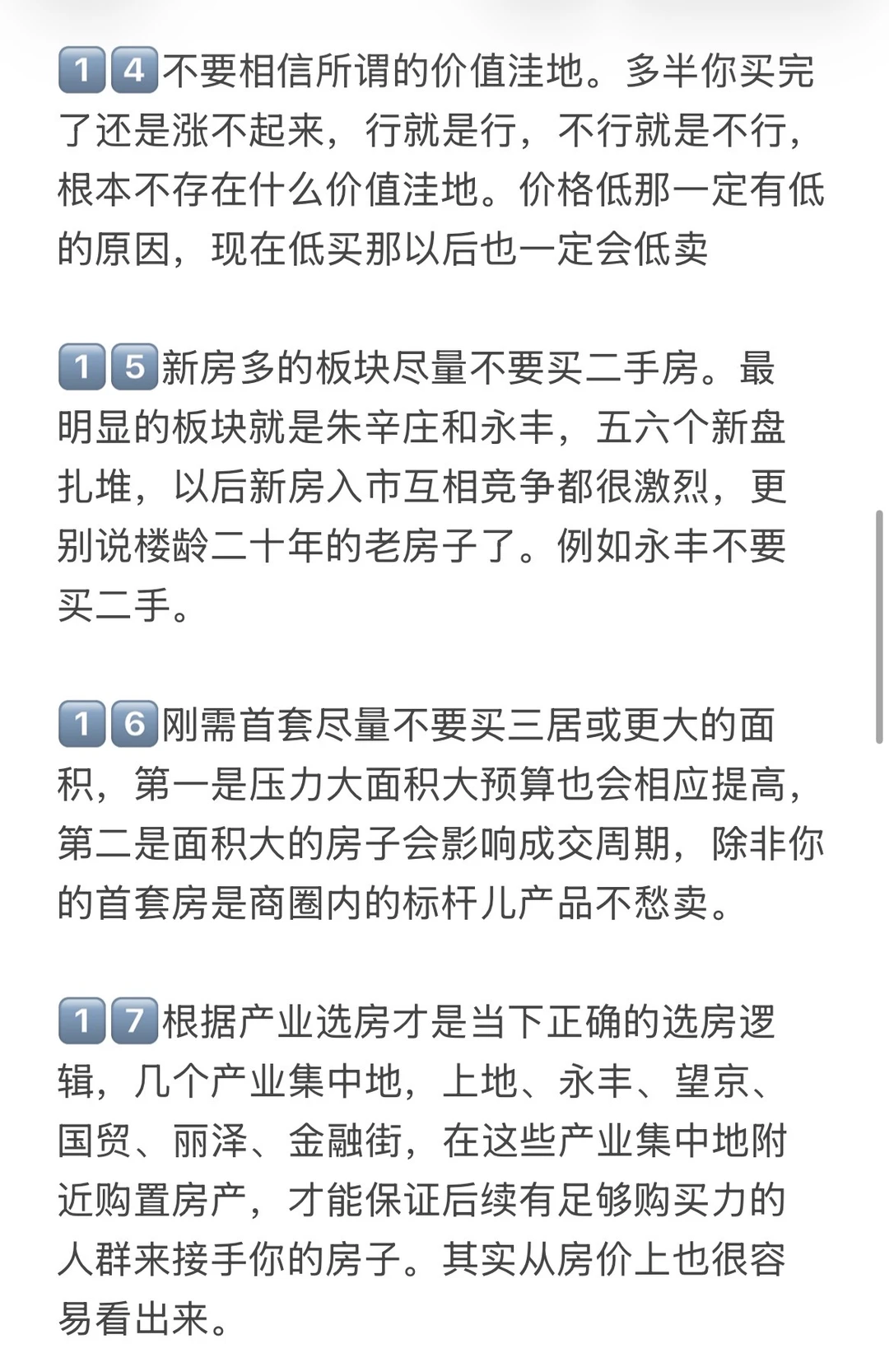 7️⃣新房多的板块尽量不要买二手房。最明显的板块就是朱辛庄和永丰,五六个新盘扎堆,以后新房入市互相竞争都很激烈,更别说楼龄二十年的老房子了。例如永丰不要买二手。