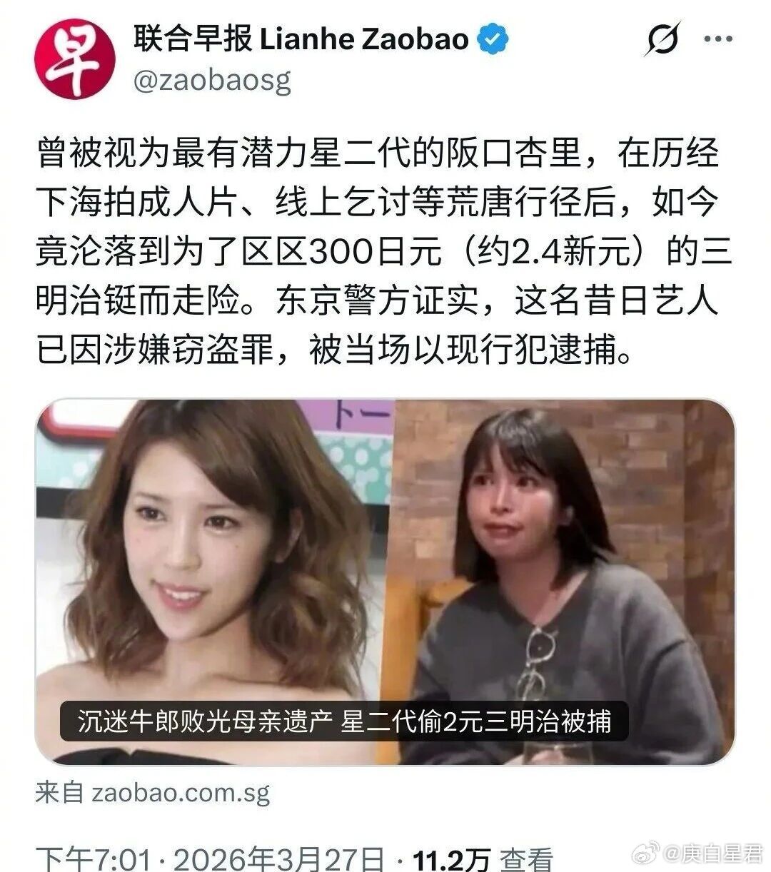 日本警察当场将女生逮捕,并指控其涉嫌“事后抢劫罪”,可能会面临重刑惩罚。而这名高中女生在接受警方讯问时,说她实在是没钱购买大米,没办法了才去偷大米吃。无独有偶,近日一名日本曾经的最有潜力的星二代女艺人阪口杏里,居然因为偷了一块价值大约13块人民币的三明治被警方逮捕。