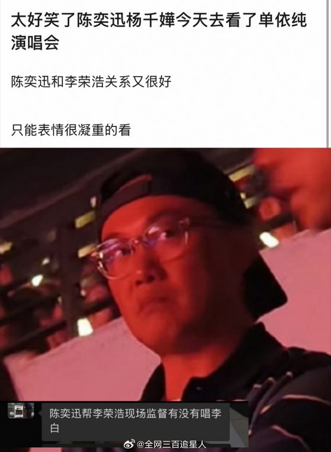 俺感觉最搞笑的其实是陈奕迅迄今为止未在单依纯演唱会中流露出一张笑脸路透,每一张都有够严肃的陈奕迅 路一直都在原唱