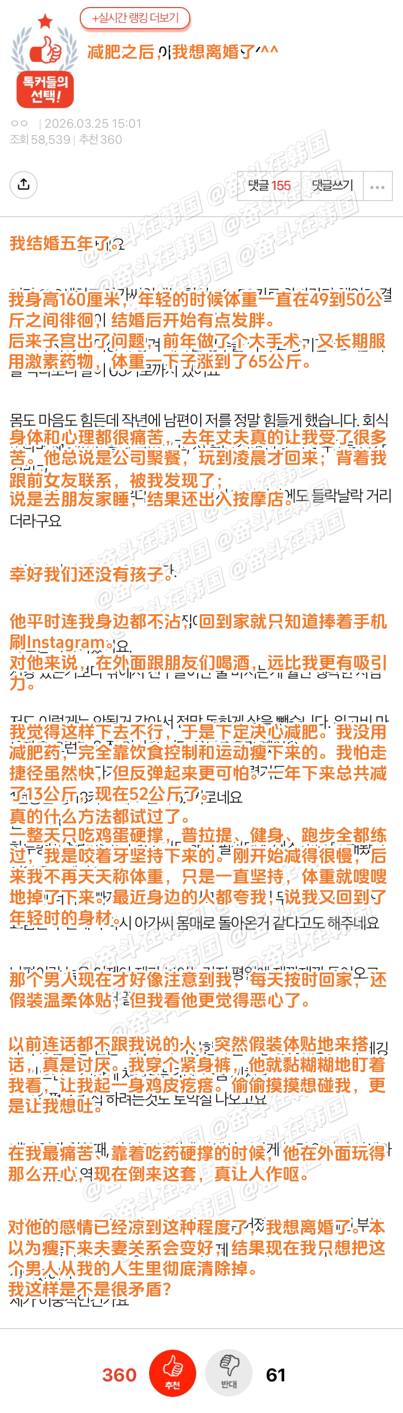 韩网热帖:减肥后想离婚了呢^^ 海外新鲜事 热点现场