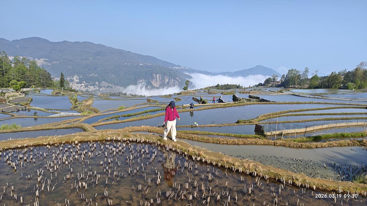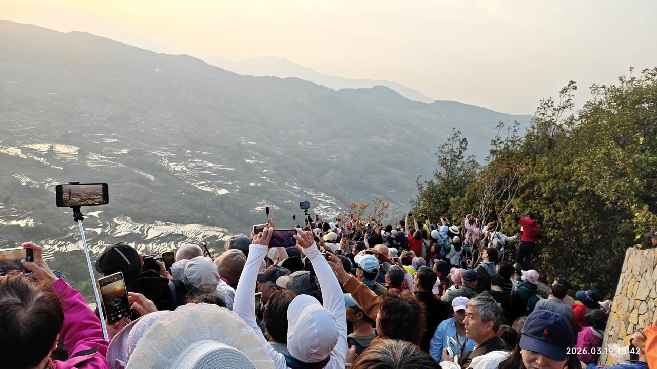 [环国行摄】第三阶段西部篇D34天总第89天:元阳县梯田 1.路线:多依树梯田~爱春~阿者科村~坝达 2.今日行驶20公里 3.主要景点:多依树梯田,爱春蓝梯田,阿者科村,坝达梯田 4.行程: 多亏昨天住在了多依树附近。否则早上如果开车过来,跟本没地方放车。 不到7点就到了多依树梯田观景台。那是人山人海。几层观景台都挤满了人,根本就没有地方。上上下下,反反复复找了几次,都挤满了人。7:20多,太阳总算出来了。之后人们才陆陆续续的散去。我们抓紧这个时机拍照。效果还不错。 多依树梯田景区位于元阳梯田核心区,距老县城(新街镇)23千米,海拔1900米,有650公顷梯田分布在多依树、爱春、大瓦遮等状如海湾的25°至50°山坡,是观赏、拍摄云海梯田、日出及山寨的最佳景区。著名风光片《云南故事》就是以这片梯田、村寨为主要场景拍摄而成。 之后回返到爱春蓝梯田,上午的光线正好。人也少。有当地村民守着口子,每人5元钱。还算不错,主要是可以进到稻田里面。在田埂上边走边拍更有意味。 在这里一个多小时一通狂拍,之后驱车回返1km多外的阿者科村。这个村前年才被评为世界级旅游乡村。门票30。进去之后感觉这个蘑菇房也就那样,村子里卫生条件并不是太好。不过周围的梯田相当不错。我们一直走到最下面的峡谷梯田观景台。这里非常好。 转完这个村之后,我们就在这个村的停车场中午做饭,休息了一会。车晒着还挺热。难得的休息两个小时。准备6点多赶到坝达梯田观日落,反正也不着急。中午光线太强,哪里的梯田都不好看。 5点多赶到坝达附近的一个停车场。这个停车场很大,而且硬化。休息了一会之后,开车到售票处。 坝达梯田从海拔800米的麻栗寨河起,连绵不断的成千上万层梯田,一直伸延至海拔2000米的高山之巅,3700多级梯田宛似天梯,直达云霄。梯田在日落时金光灿烂,银光闪闪,是观赏、拍摄云海梯田、日落及山寨的最佳景区。 观景台上人也超级多。看景不重要,看人挺好玩。这里的景色其实很平常,也就是太阳光反射以后有反光田,就像黑白摄影。 拍完之后天就快黑了。我们返回到刚才的停车场。晚上在这里露营,非常安静。 5.住宿:坎达梯田附近停车场露营。 6.路况:好 7.天气温度:12-17度,晴天,体感舒适。海拔1800m。