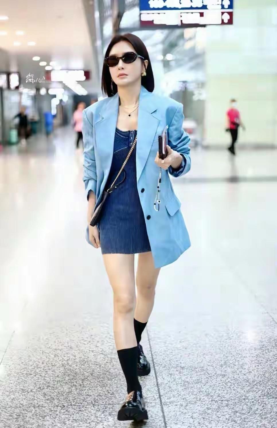 秦岚挺喜欢波波头这一发型,衬得面部线条更流畅,更有立体感。秦岚虽然到了46岁,但她平日穿搭一点都不显年龄。她会尝试短裙、短裤穿搭,将一双迷人的漫画腿展现出来,许多同龄人平日穿衣露大部分腿部肌肤会不好意思。接下来,就来看下秦岚的时髦穿着吧。 天蓝色是一个很养眼的颜色,身上这件宽松西装蛮有看点。首先,它的版型有点宽松,与修身款明显不同,对上半身的肉肉极度包容,看着就具有随性感。领子设计很平常,采用的是经典的平驳领,线条挺括但不硬,因此视觉上并不会显得太正式,不是只有严肃场合才能穿。门襟处映入眼帘的是两颗黑纽扣,是单排设计。