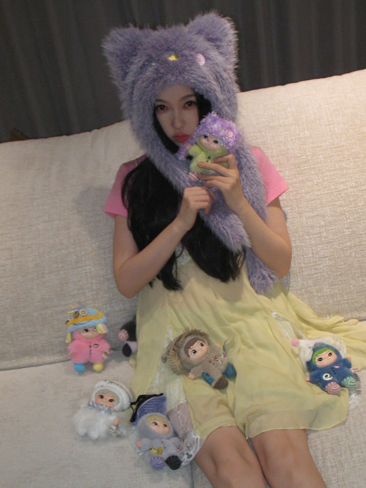虞书欣和wakuku同款帽子 虞书欣和WAKUKU同款紫色毛绒小帽子造型,咱就是