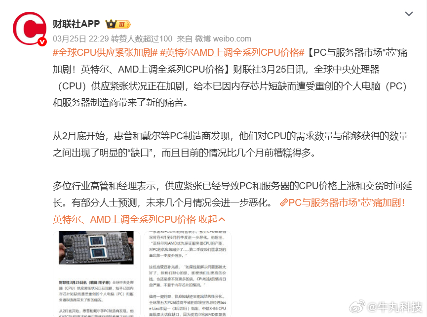 果不其然,手机宣布涨价后,下一个要轮到电脑了。涨价时代,怎么买到实惠的数码产品? 就在昨晚,外媒突然爆出,英特尔和AMD已通知客户将上涨CPU价格,消费级CPU涨价10%,服务器级CPU涨价15%。消息一出,AMD、英特尔股价纷纷大涨7%。涨价理由很简单,AI算力挤占了产能,以及成本与供应链涨价压力。 无独有偶,由于存储芯片供不应求与涨价,目前OPPO、一加、vivo、iQOO、荣耀、小米均已官宣或明确执行手机涨价,200到1000元不等。有不少商家,在涨价前夕进行了囤货。 现在芯片荒到底有多严重呢?一个例子就能看出,近期不少报废的二手机价格暴涨,原来只值得10元,现在值500元,前提是主板没损坏,更有媒体爆料三台旧手机就能从贩子手里换一部二手iPhone。 作为一个消费者,明明可以便宜买到手机的,肯定不愿意多花钱。那么在数码涨价时代,如何买到划算的机器?目前已经观察到了三种现象: 一是完全不管涨价,手机性能还行的,选择换电池、手机壳,继续坚持几年。二是去二手渠道买机器,能减少部分溢价。只是二手行业水深,例如前段时间闹出的苹果被换屏事件,后面苹果严查,黄牛砸手里退不回去,最后基本是小白接盘。 三是买上一代全新旗舰手机,这也是我比较推荐的。上一代旗舰机目前溢价较少,也能享受国补,是个不错选择。近期京东上一代大内存手机销量涨了一倍;而在国内平台唯品会上,2月以来华为、OPPO、一加、苹果均迎来了100%以上增长,其中不少就是上一代旗舰机,溢价减少叠加平台折扣,成为了不少人的新选择。 去年以来AI在国内外飞速发展,现在各大互联网公司都在加速将AI应用到工作,所以内存、芯片供不应求带来的数码产品涨价效应会在接下来一两年体现得淋漓尽致。个人建议,有需求就早点买,不一定追最新款,也不一定非安卓不可。