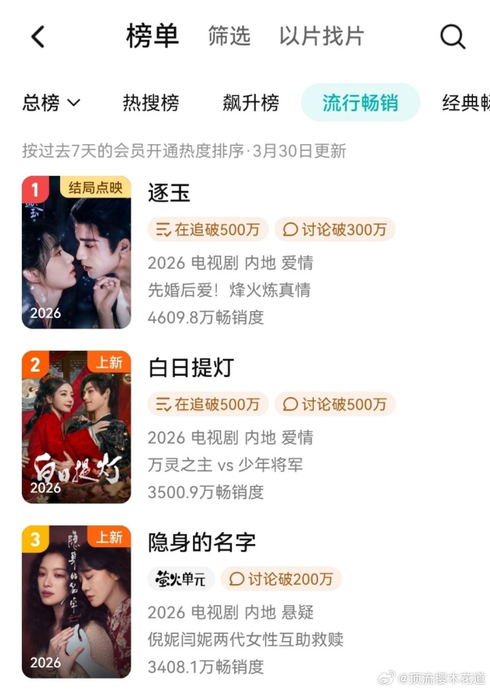 白日提灯播放指数超逐玉腾讯第一指标是招商,第二指标就是拉新,而且拉新来说双平台确实是分流项,逐玉更吃亏,但是这两项白日都不如逐玉,所以吹啥踩啥呢?