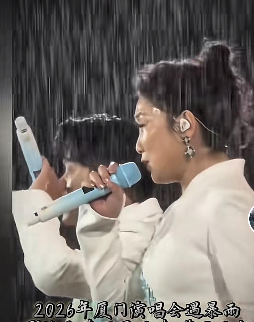 玲花的妆淋花了! 凤凰传奇厦门演唱会,大降大雨,在演唱策马奔腾时,曾毅率先扔伞