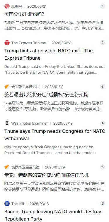 你认为美国会退出北约吗 美国会不会退出北约还真不好说。之前特朗普就表达过对北约的不满,他说美国是否退出北约是应该考虑的事,还称自己不需要国会就能做这个决定。特朗普多次让欧洲国家等协助保障霍尔木兹海峡航行安全,施压北约盟友,不然面临“非常坏”后果。可像法国、韩国等多个国家表示不会派军舰去。特朗普还在社交平台批评盟友,说美国不再需要、渴望他们协助。不过目前他也说没具体退出计划。美国和北约的关系挺复杂,未来美国退不退出北约,还得接着瞧。