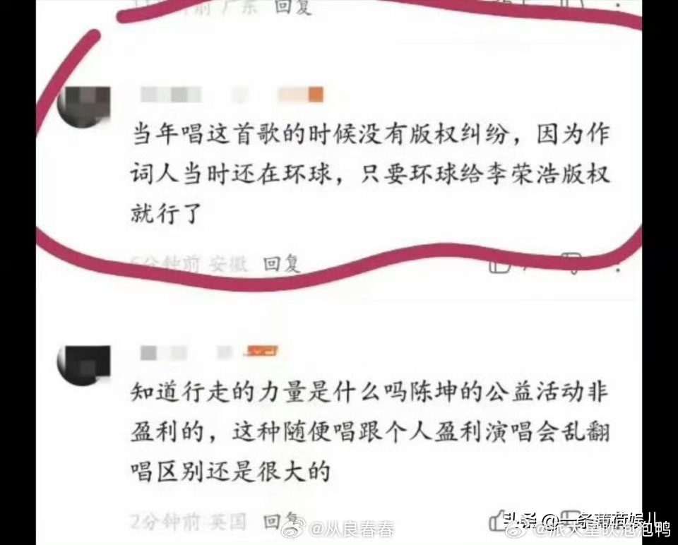 乱成一锅粥了,陈奕迅《路一直都在》作词人吴向飞发文艾特李荣浩,“最近我发现李荣浩曾公开演唱我写的《路一直都在》,没向我取得授权,也没有向我支付任何使用费。李荣浩是不是也应该向我道个歉?”后续:自己打自己的脸…