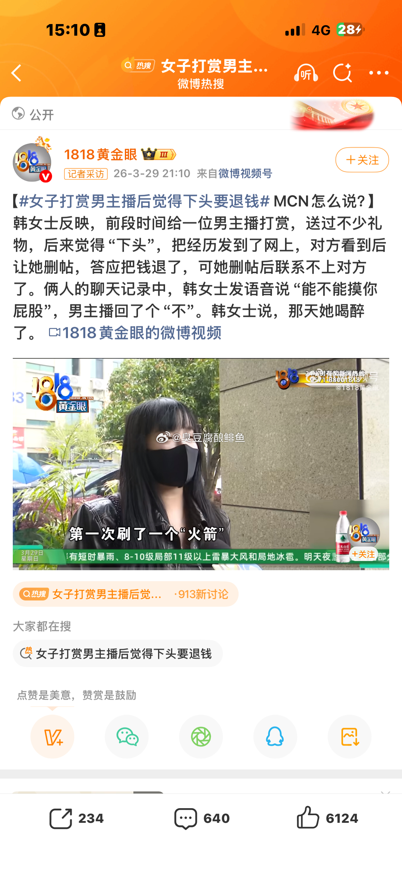 女子打赏男主播后觉得下头要退钱字都认识,连起来不认识了。