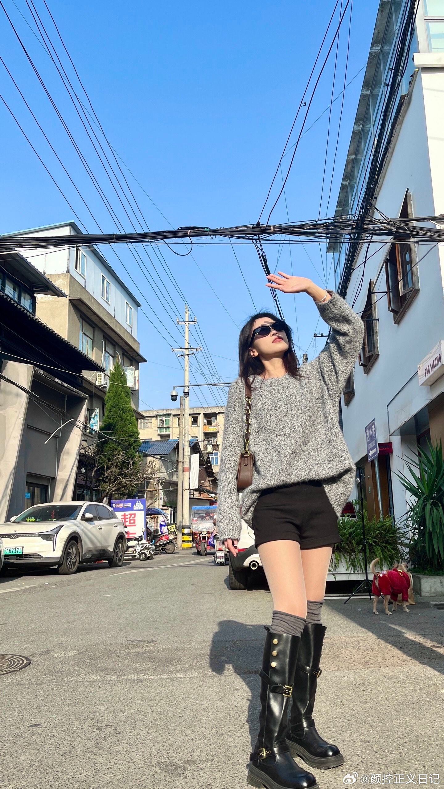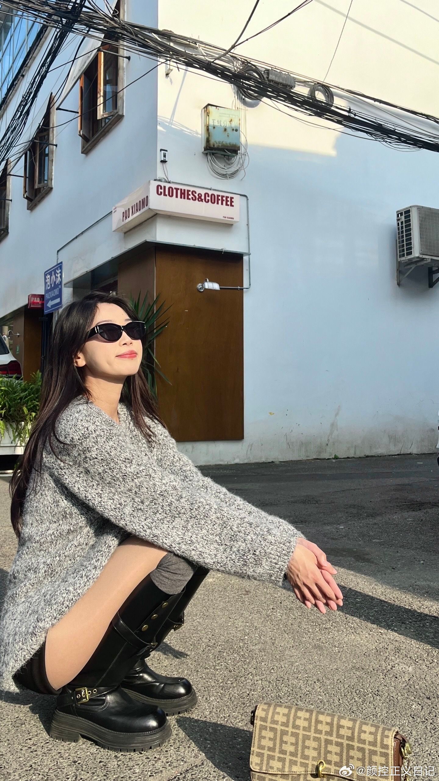 高圆圆这组街拍也太会了!岁月沉淀的温柔✨灰调针织衫衬得气质清冷又柔和,黑阔腿