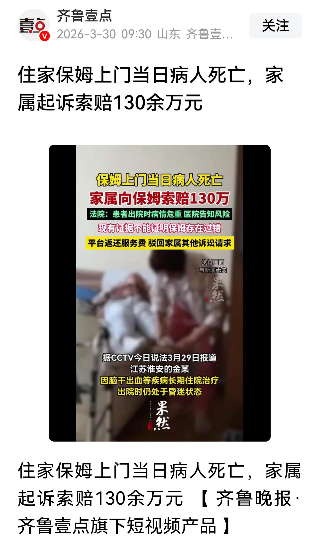 讹诈者必须入刑了! 将自己家重病的老人接出院,然后雇保姆,老人死亡后,告保姆和家政公司。 这家属的算盘🧮打的挺响[捂脸] 法院虽然没有支持他们的诉讼请求,但是对于他们的讹诈行为也没有追究。 这就是为啥讹诈事情屡屡不绝,且方法层出不穷的原因!
