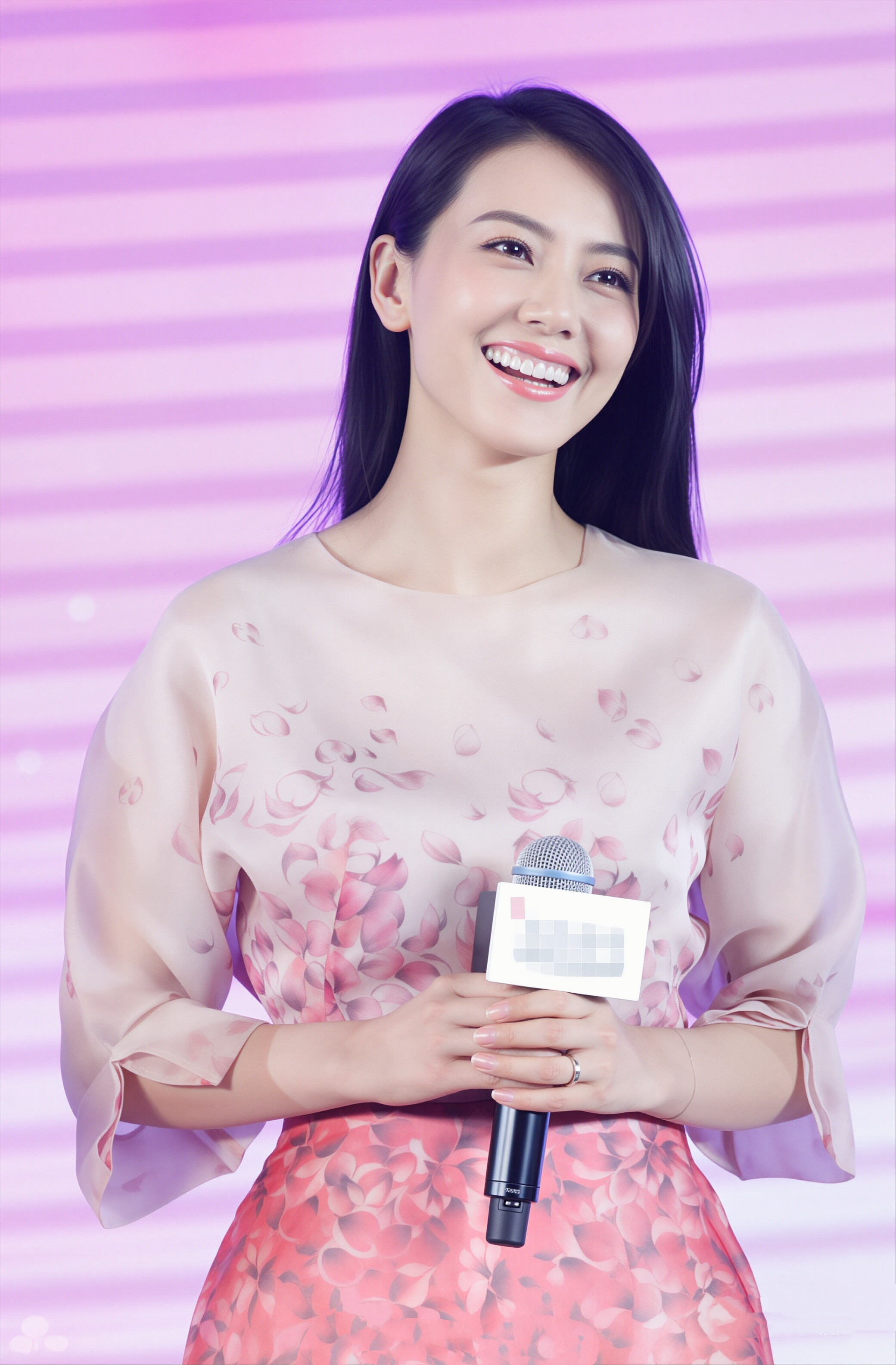 高圆圆 眉眼弯弯,笑里藏着最温柔的东方力量,粉花裙衬得整个人像从春日诗画里走出来