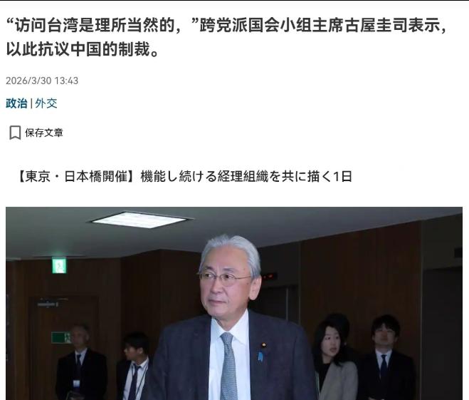 态度很嚣张!在被我们制裁之后,古屋圭司出来回应了! 3月30日,根据日本产经新闻报道,在“日华议员恳谈会”会长古屋圭司被我们采取冻结财产、禁止入境等制裁措施之后,此人站出来对记者声称,“访问”台湾对我们国会团体来说是理所当然的。这些制裁是典型的中国式做法。自己几十年都没去过中国,在中国也没有任何资产,所以“这些制裁不会影响到我”。 那他为什么还敢这么嚣张地回应呢?说白了,就是一种政治表演。他故意说“几十年没去过中国”、“在中国没有资产”,就是想营造一种“中国的制裁对我无效”的假象,给自己和背后的势力打气,同时也在试探中国的反应和底线。 他以为这样就能显得自己很“硬气”,还能在日本国内和台湾岛内那帮人面前刷一波存在感。但这种回应,恰恰暴露了他对中国的无知和轻视。他以为制裁只是针对他个人的那点财产和旅行自由,但他错了。 中国的制裁,更重要的是一种政治和法律上的宣示,是向全世界表明:任何损害中国主权和领土完整的行为,都必将付出代价。这不仅仅是针对他古屋圭司一个人,更是对所有企图干涉中国内政、破坏台海和平稳定的外部势力发出的明确警告。 就在3月18日,咱们国台办的发言人陈斌华还点名批评过他,说他跑到台湾大放厥词,鼓噪“决心保护台湾”、“永远不能允许台湾变局发生”,国台办直接送了他四个字:“不自量力”。连国台办都这么说了,可见他的言行已经猖狂到了什么地步。 他作为日本首相高市早苗的核心幕僚,他的这些言论,很大程度上就代表了日本右翼势力当前在台湾问题上的危险倾向。他们打着“维护台海和平”的幌子,干的却是煽动分裂、破坏地区稳定的勾当。 所以说,古屋圭司的这番回应,根本不是什么“理直气壮”,而是彻头彻尾的挑衅和蔑视。他以为靠几句轻飘飘的话就能抵消中国制裁的份量,这完全是打错了算盘。 中国的反制措施已经生效,这不仅仅是一纸文件,它意味着他在中国法律框架下被正式列为制裁对象,任何与他相关的商业往来、人员交流都会受到严格限制。这种法律和政治上的孤立效应,长远来看,远比冻结他个人那点可能不存在的资产要深远得多。 对于咱们中国人来说,看到这种嚣张的言论当然会气愤。但更重要的是,我们要看清楚他背后的意图,以及中国采取反制措施的坚决性和正当性。中国的红线就摆在那里,谁碰谁就要付出代价。 古屋圭司今天的嚣张,改变不了台湾是中国领土不可分割一部分的事实,也阻挡不了中国维护国家统一的坚定决心。他的表演,终究只是历史潮流中的一小段杂音罢了。