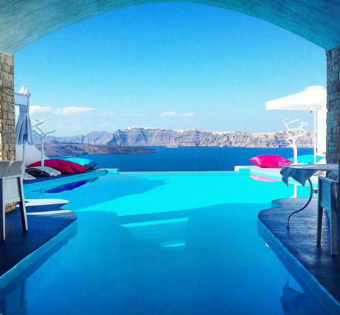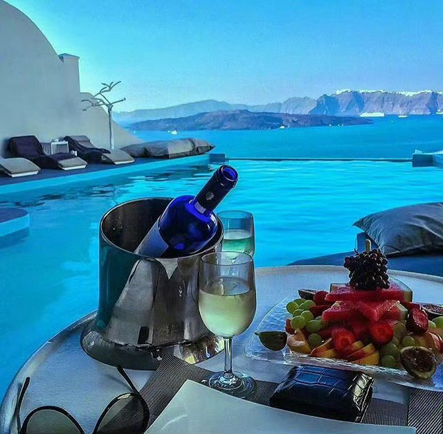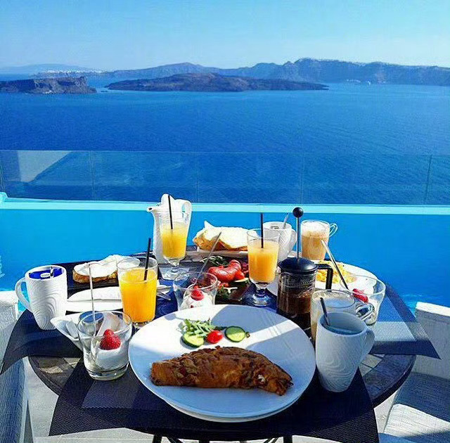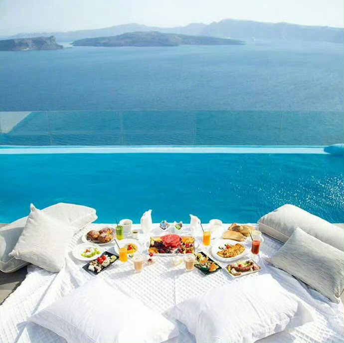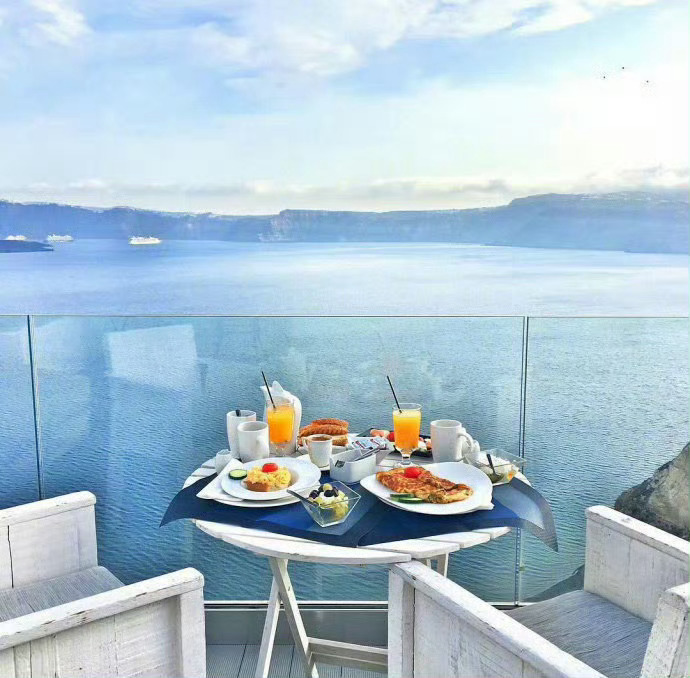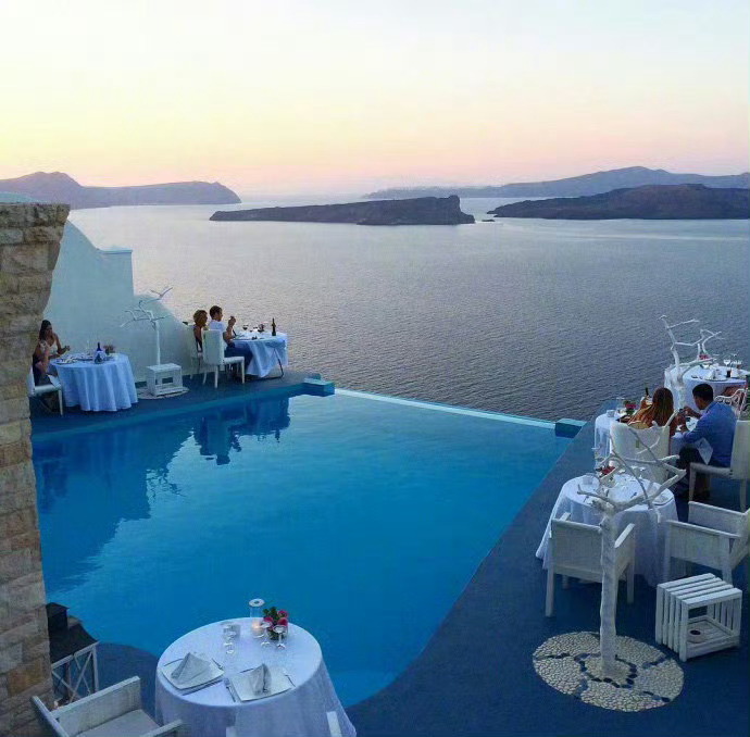 蓝色的圣托里尼,是一个烛光晚餐的好地方。