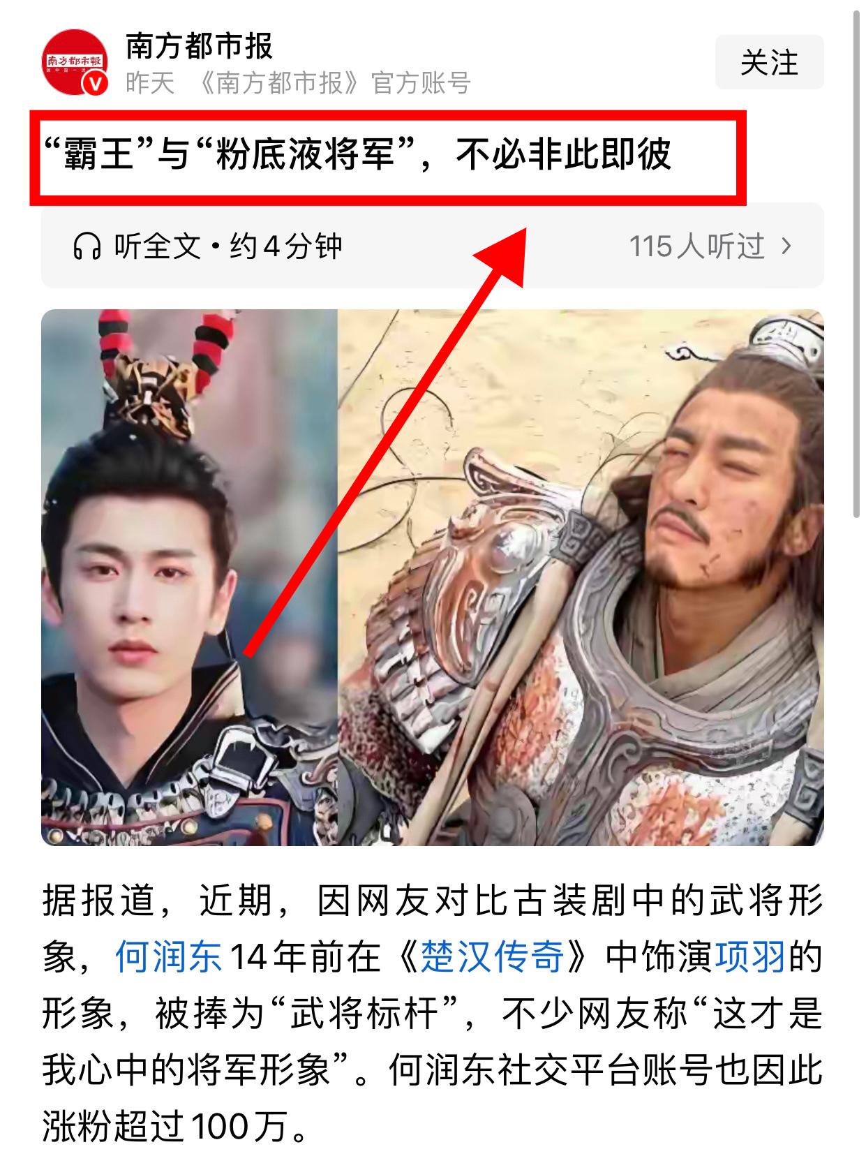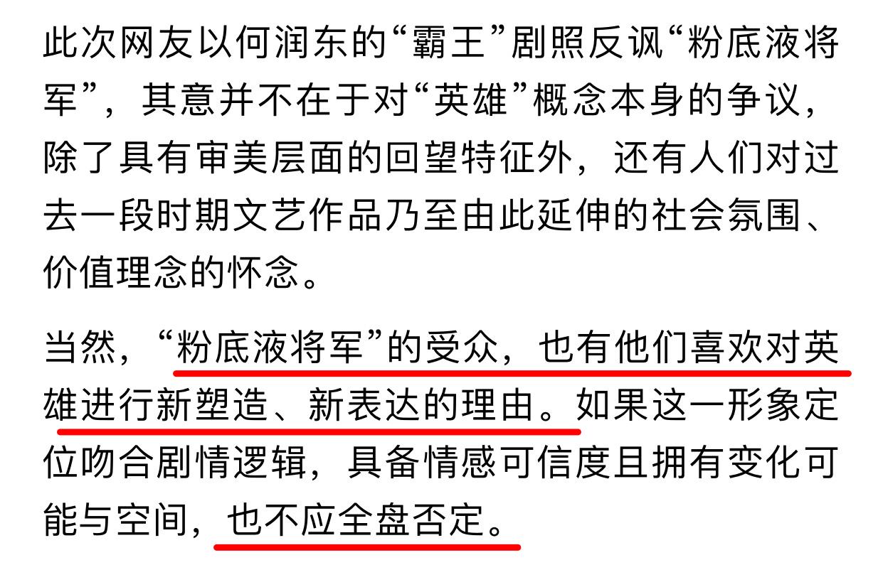 想到了集美们不认识“正平”大哥、想到了集美为“粉底液将军”摇旗呐喊,唯独没想到《南方都市报》这样的主流媒体屁股也会坐歪,帮着集美们找角度证明这样的将军是可以接受而且有它存在的道理,听着不像南方都市更像是西方都市。“粉底液”不可接受的背后是对于战斗者的形象篡改,而不是简单的粉底过厚。