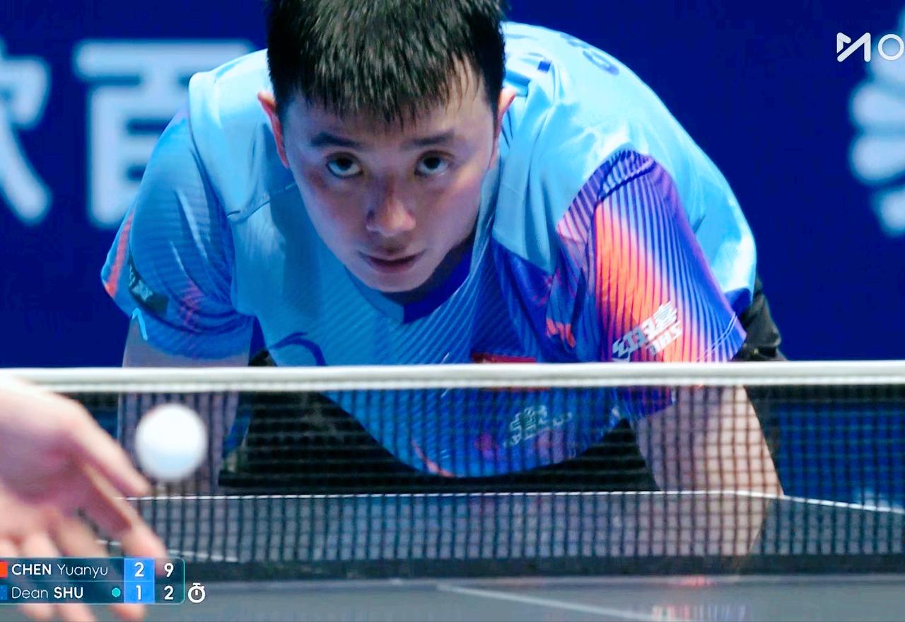 侯英超急眼了!陈垣宇你别退呀,你一退必然输了。 前两局 陈垣宇都是11:8拿下 第三局 舒迪恩11:8扳回一局。 气的侯英超说: 陈垣宇, 你干嘛用这么多侧身? 对手是硬气功, 你还想和人家硬碰硬, 人家已经从气势压制住你了。 人家的气场多足, 你看你都成了闷葫芦。 第四局 陈垣宇不退了, 开始打节奏和落点, 舒迪恩基本功不足的弱点出来了, 陈垣宇7:0开局, 11;2拿下。 3:1拿下比赛。