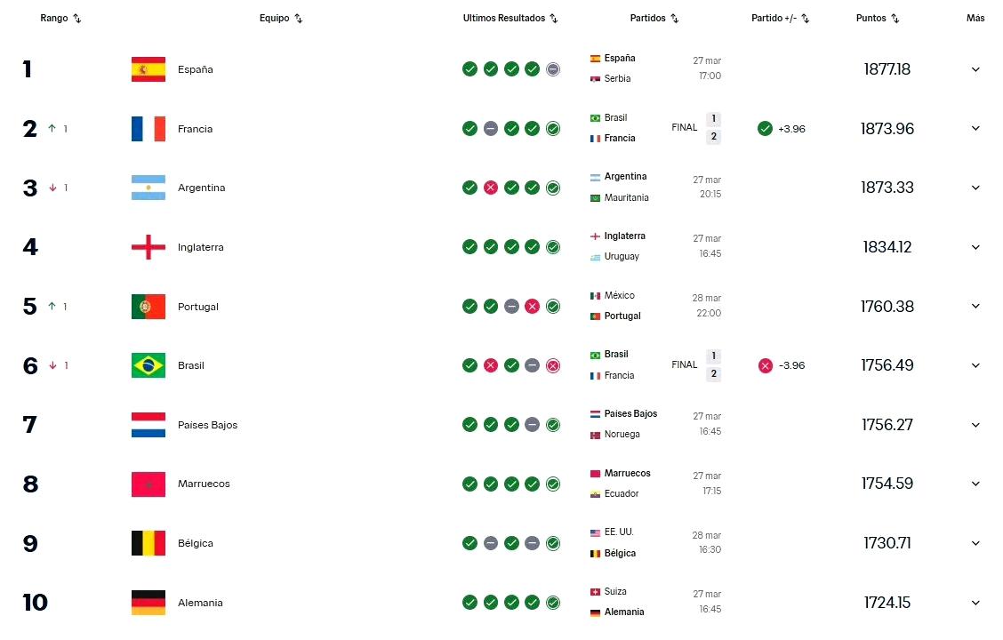 单纯看带队能力,梅西强还是C罗强? 2017年,C罗带领葡萄牙国家队夺得欧洲杯冠军,排名升到了世界第三,随后9年葡萄牙一直在5名至10名之间。 2022年,梅西带领阿根廷国家队夺得世界杯,排名升至世界第一,并且霸榜长达2年5个月。直至现在,阿根廷稳居世界前三。