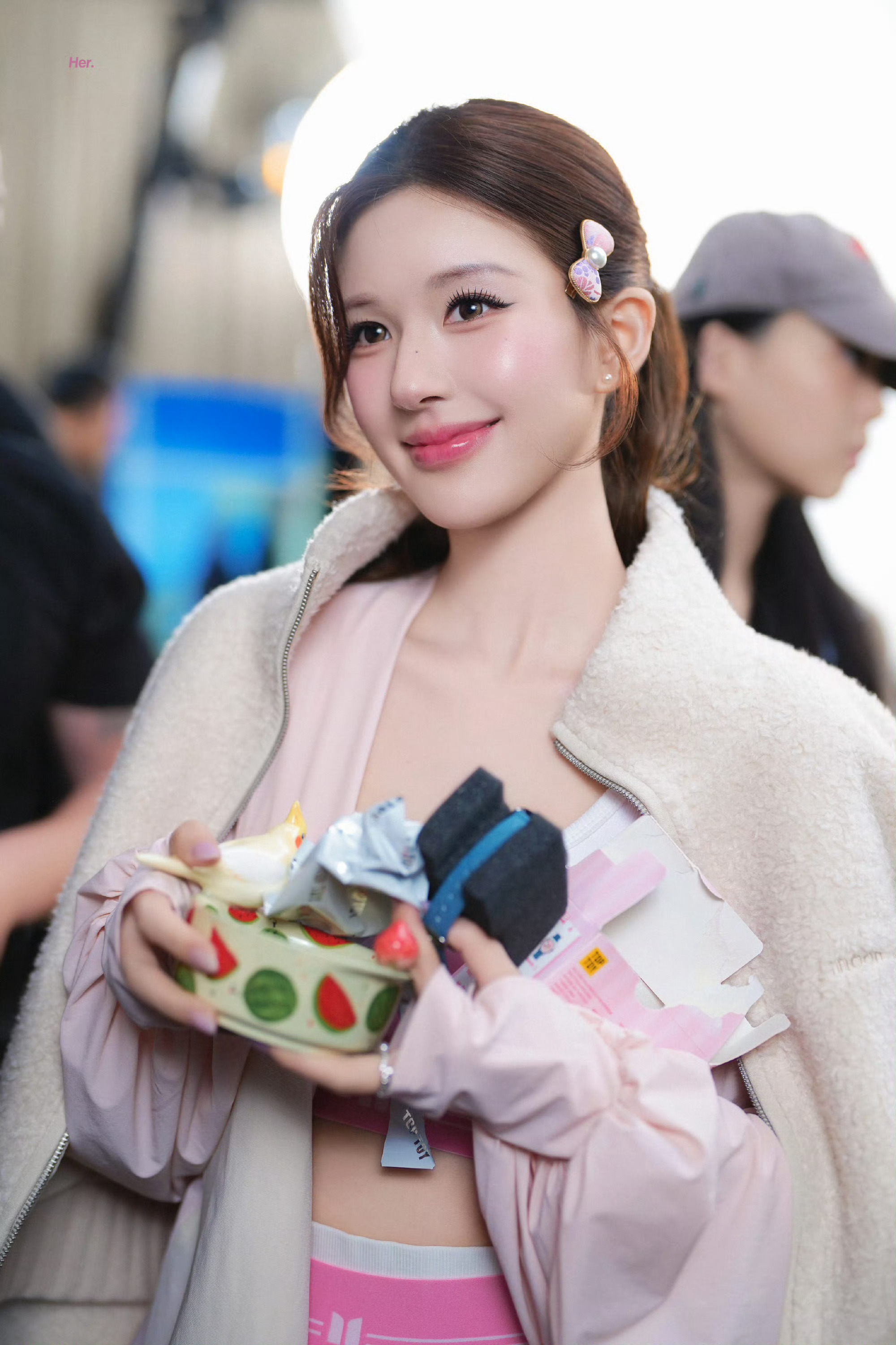 孟子义穿搭壁纸:高跟大长腿,柔美精致。孟子义
