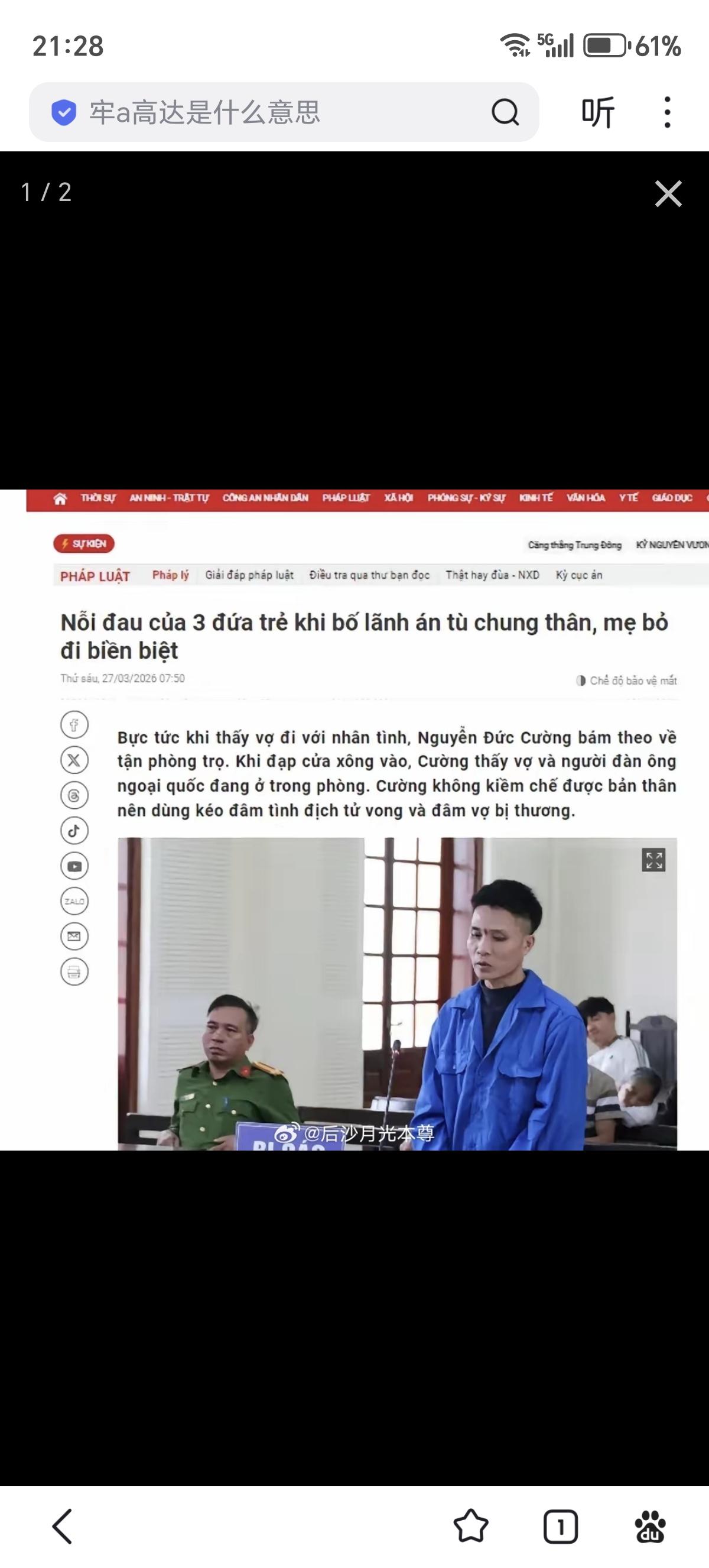 据越南《岘港公安报》3月27日公布一起因奸情杀人案件。 2024年,越南义安省30岁女子壬某因懂中文,进入一家中资企业工作,工资大大高于在各家餐厅做临时服务员的丈夫阮德强。 不久,女方嫌弃丈夫又穷又土,出轨中国籍40岁男子夏某。 丈夫虽有怀疑,但为了三个孩子,没有声张。 2024年12月31日,这对奸夫淫妇到一家餐厅庆祝跨年。 没想到阮德强就在这里端盘子,夫妻二人对视,妻子装作不认识丈夫,半小时后与情人离开。 情绪崩溃的丈夫骑摩托车跟踪至出租屋。 当晚10点30分,他手持大剪刀踹开房门,捅死赤身躺在床上的夏某,妻子逃跑呼救,被刺中肋部,受伤倒地。 今年,嫌疑人被判无期徒刑。 女方在当地消失,剩下三个孩子跟奶奶生活。 真是惨!