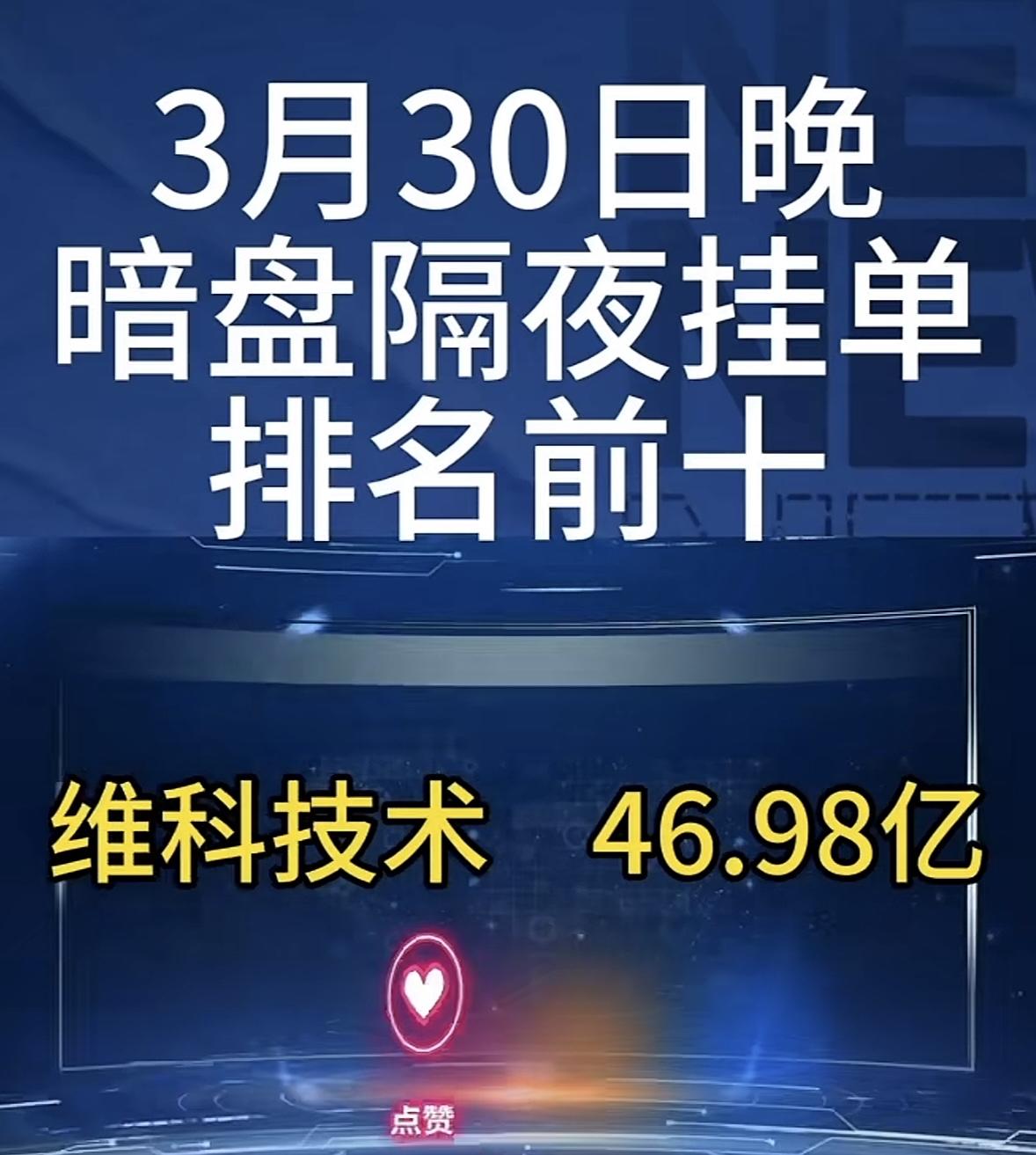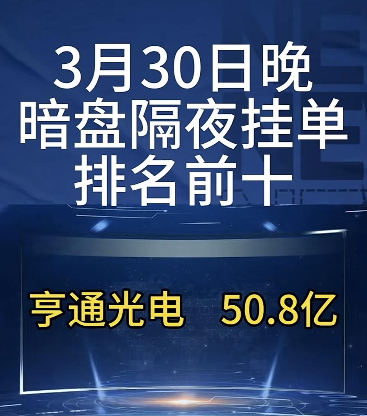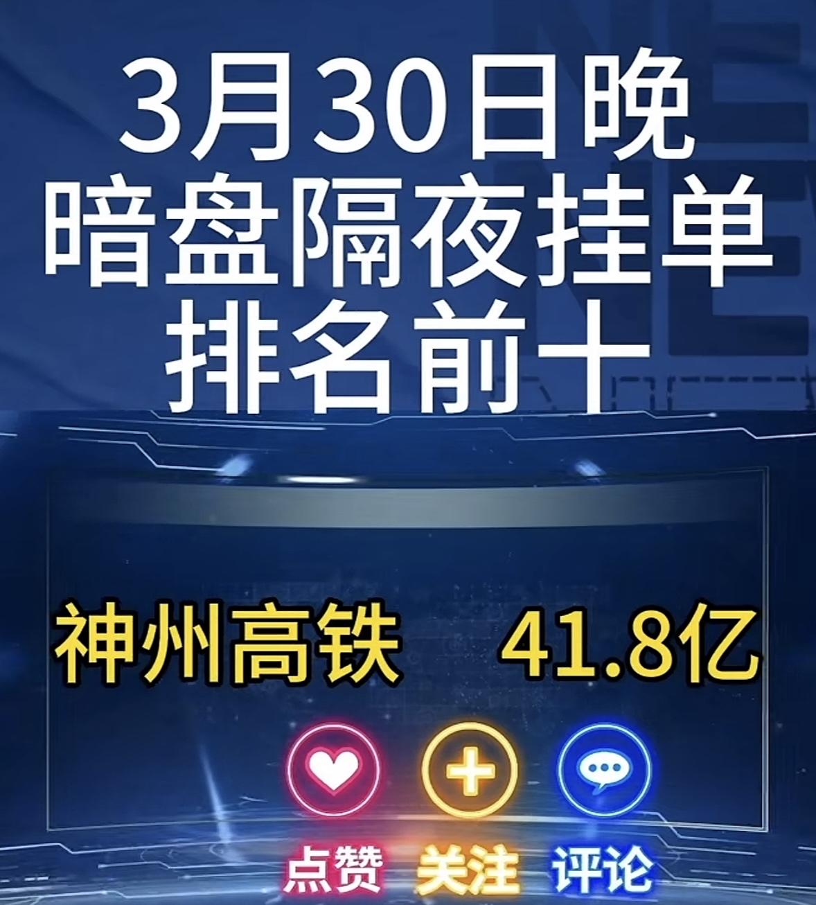3月31日周二暗盘隔夜挂单排行榜出炉 3月30日晚神州高铁暗盘可真是热闹非凡!