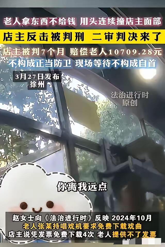 悲剧还是发生了!!江苏徐州,一老人让店主给免费下载歌,但又无法证明是在这家店买的,临走偷拿走店里的充电器。老板让他给钱,他倚老卖老,用头连续顶撞店主面部,还骂店主刚过世的母亲,店主忍不住反击,至老人轻伤二级。店主因故意伤害罪被判刑7个月,赔偿老人10709.28元。法院:不构成正当防卫。 那天的小店还飘着刚煮好的茶叶蛋香气,店主陈某刚送走一位熟客,转身就见老人张某挎着唱戏机走进来,说要免费下载戏曲。 陈某按店里规矩跟他解释,凭购机发票能免费下载四次,没发票的话要收点服务费。老人摆摆手说机子是别人送的,没发票,这事本可以就此打住,可他又指着柜台里的充电器说要试一个,陈某没多想,递了个新的过去,没想到老人插上试好后,攥着充电器就往门外走,半分付钱的意思都没有。 陈某追上去提醒,语气里还带着几分客气,可老人瞬间炸了毛,攥着拳头往他跟前凑,紧接着就用额头狠狠撞向他的脸,一下,两下,连撞了好几下。 更让陈某崩溃的是,老人嘴里还蹦出恶毒的话,句句戳着他刚过世的90岁老母亲的痛处。那几天,陈某还陷在丧母的悲痛里,连眼睛都熬红了,此刻被人这样戳着伤口辱骂,又连着被撞脸,他再也忍不住,抬手推了老人一把,混乱中挥拳打了过去,直到旁边的顾客拉架才停手。 老人被120接走,诊断出鼻骨骨折,鉴定为轻伤二级。陈某站在原地没跑,等着警察来,他以为自己是在自卫,可等来的却是刑事拘留。一审法庭上,他低着头说自己是被逼的,可法院认定他的反击不是为了制止侵害,而是泄愤,判了10个月有期徒刑。 妻子赵女士不甘心,连夜凑钱请律师上诉,二审庭上,她声泪俱下地陈述前因后果,法官也认可老人对事件激化负有主要责任,把民事赔偿减了30%,可刑事判决里,依旧没认下正当防卫,刑期改到7个月,还明确说他在现场等待的行为不算自首。 消息传出来,网上炸了锅。有人骂法院不近人情,说换谁被这样撞脸骂妈都忍不了;也有人说法律讲的是尺度,正当防卫不能变成泄愤的借口。 陈某的家人翻着监控录像,一遍遍地看,老人撞脸的动作、辱骂的话语都清清楚楚,可法律的标尺里,老人的攻击被认定为轻微暴力,陈某的反击超出了必要限度。他不是想伤人,只是在最痛的时刻,被最恶毒的言语和最直接的攻击逼到了墙角,忘了要控制力道。 这桩案子里,最让人难受的不是判决本身,而是情理和法理的拉扯。陈某的反击,是普通人在极端情绪下的本能反应,可法律要的是冷静和克制,要的是“刚刚好”的防卫尺度。有人说,这是在教好人要忍,可也有人说,法律要守住的是底线,不能让情绪失控变成伤害他人的理由。 二审判决下来后,陈某收拾好行李准备入狱,他没再上诉,只是跟妻子说,以后不管遇到什么事,都要先忍住,别再冲动。 赵女士看着他憔悴的脸,把家里的钥匙塞到他手里,说会带着孩子等他出来。小店暂时关了门,门口的“凭发票免费下载”的牌子还挂着,只是再也没人像陈某那样,笑着跟顾客解释规矩,也再也没人会在丧母的悲痛里,被人戳着伤口撞脸。 这不是谁对谁错的简单判断题,而是一道关于人性和法律的难题。它让我们看到,情理的温度和法理的刚性,有时候会撞得头破血流,而夹在中间的普通人,只能在规则里学着收敛情绪,学着在痛处保持冷静。 各位读者你们怎么看?欢迎在评论区讨论。
