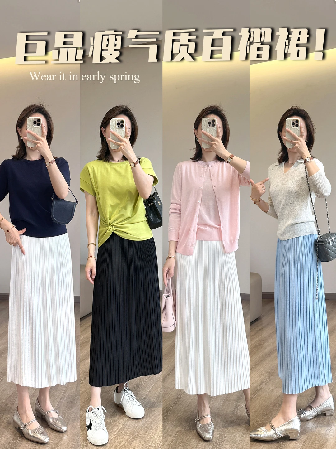 果然还是百褶裙能穿出这种气质感~ 遮胯显瘦一绝 通勤风优雅不挑场合👌超有气质 158小个子穿搭 梨形身材穿搭 春夏穿搭 半身裙穿搭 百褶裙 显瘦穿搭 温柔穿搭 气质穿搭 纱裙 小个子穿搭